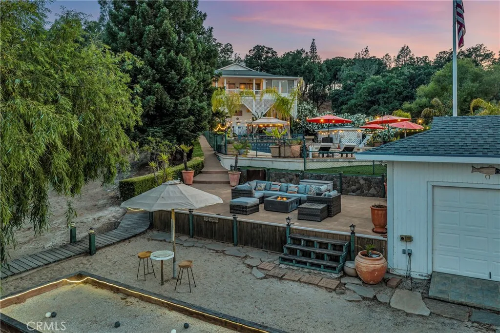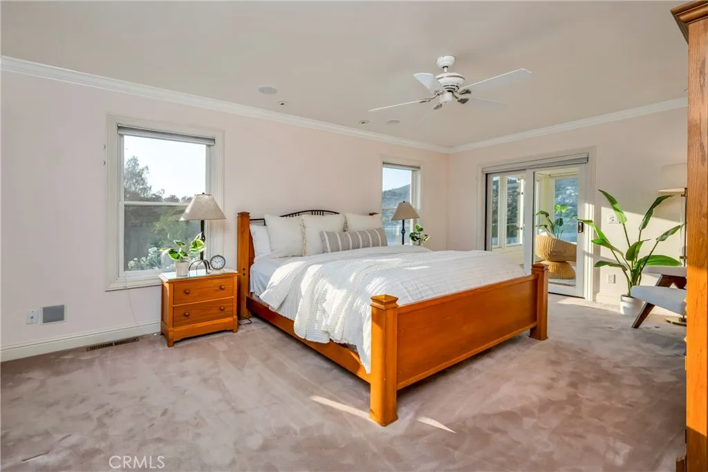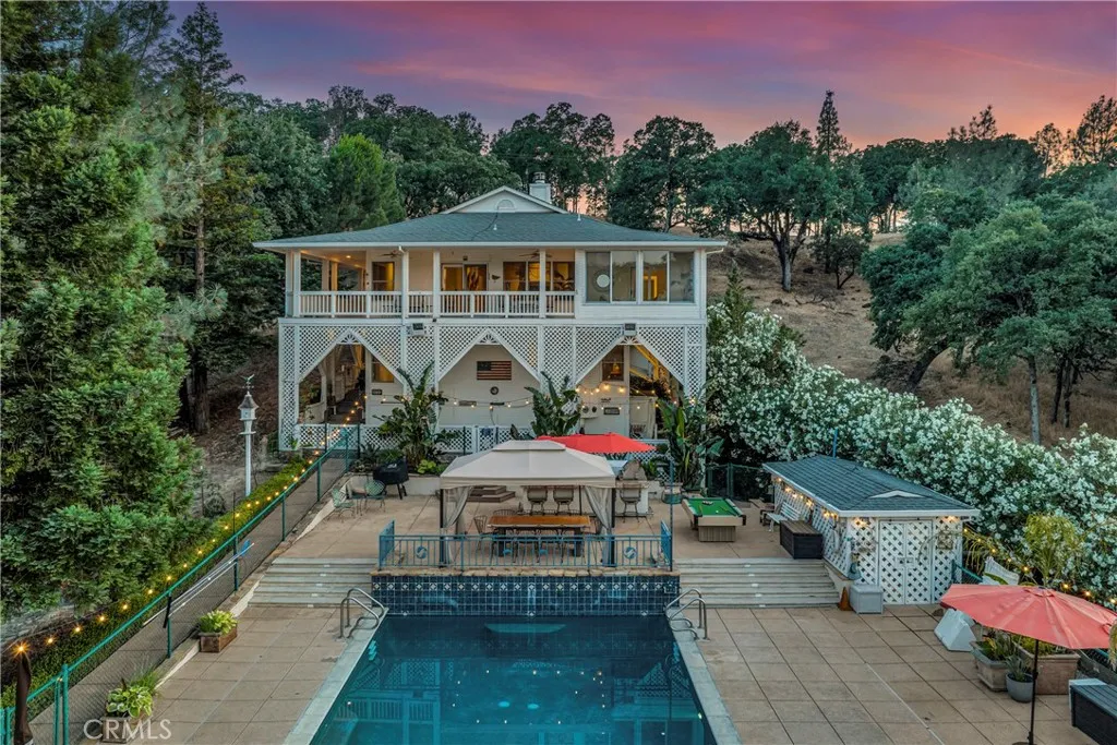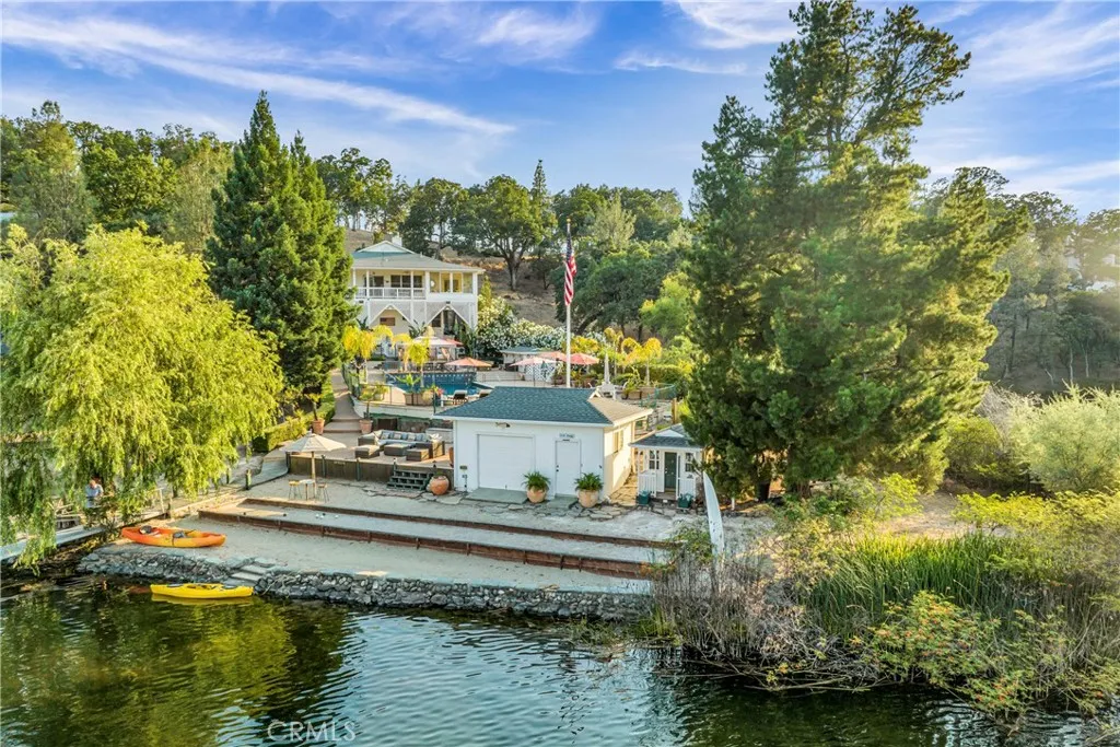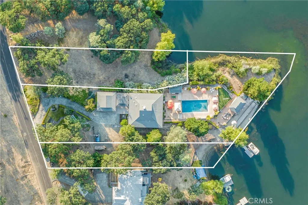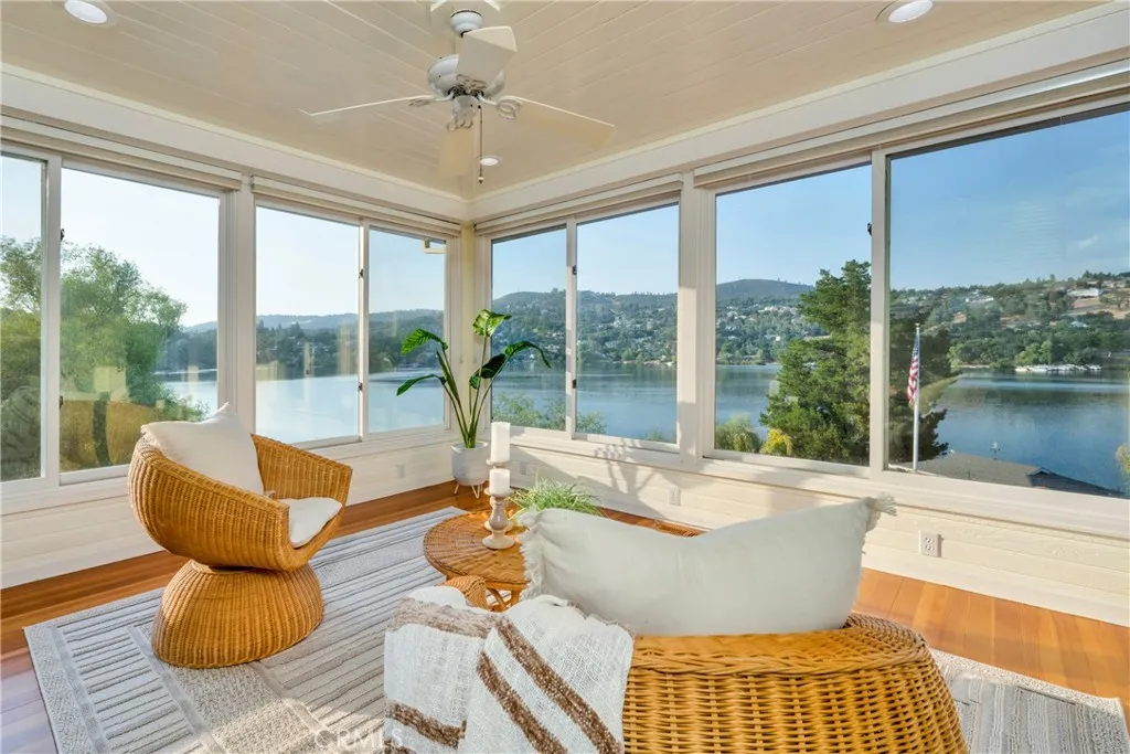 QuintessentialLakefront Estate situated on nearly1 acre (spanning 2 parcels) with a Private Peninsula, Incredible Outdoor Entertaining Space including a Pool & Spa, Boat house, Private Dock + Pontoon Boat, Bocce Court, Children's Playhouse and so much more! This 3 bed (+ 2 bonus rooms) 3.5 bath home has 2,524 SF of living space located in the thriving community of Hidden Valley Lake, just 20 miles north of Calistoga. Expansive lake and hillside views can be enjoyed upon entering the home. Timeless character throughout including gorgeous hardwood flooring, crown molding, custom window coverings, recessed lighting, tray ceilingsand surround sound speakers. The galley style kitchen has an abundance of storage, a propane range and 2 dining options in the breakfast nook or formal dining area just off the kitchen. The Living room offers a stately wood burning fireplace, built-in bookshelves & access to the covered wrap around deck. The primary suite found on the main level has an expansivewalk-in closet and outstanding views with bright light +an adjoining sunroomto relax in a peaceful setting. The ensuite bathroom offers double sink vanity, built-in storage unit and an extra large walk-in steam shower. 1/2 bath with pedestal sink on the main level. The lower level has a large family room, laundry suite, full bathroom and 2 additional bedrooms with ceiling fans. In an expanded area under the home you will find 2 additional guest bedrooms, a full bathroom, wine cellar/storage room and access to the lower deck that includes a spa, outdoor shower and built-in seating area. The detac