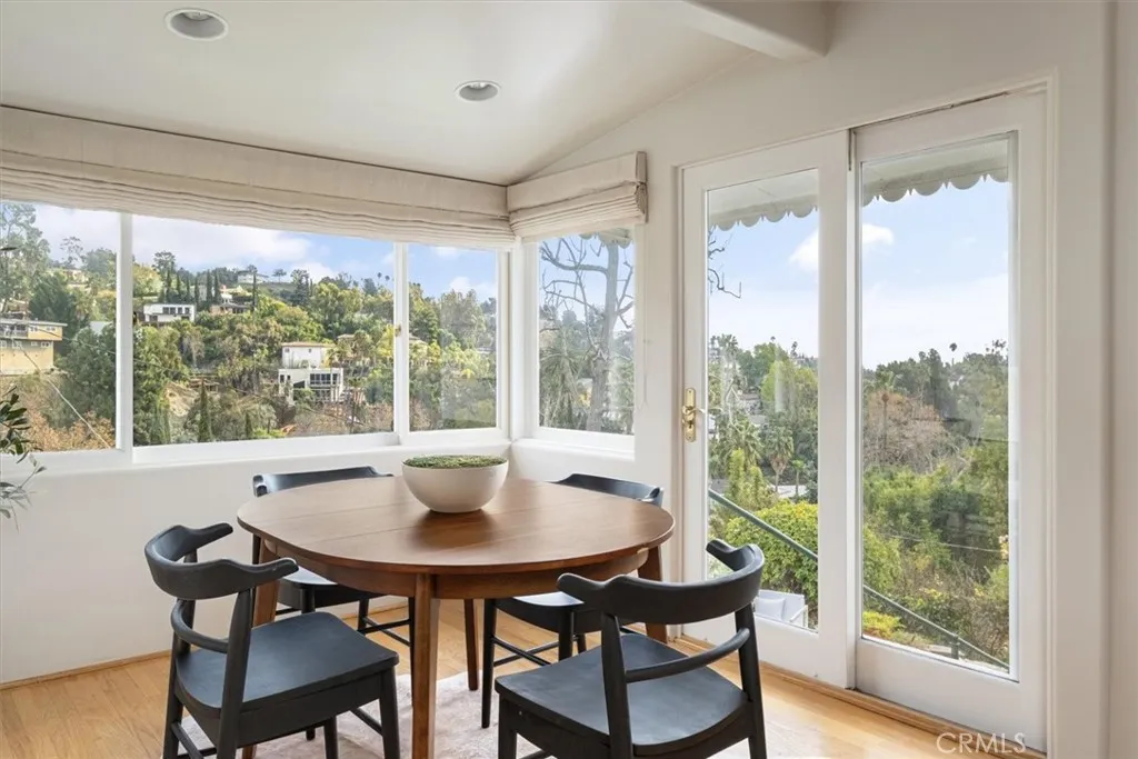 ARB&B/lease potential! Trust Sale! Needs some cosmetics, but you can beat the view! Delight in the Hollywood hills with this classic style home. Take in the incredible views from the city to the rural canyon from almost every room in the house. Perfect for the person the prefers to entertain alfresco with three separate outdoor entertaining areas. Your Garden of Eden yard (no Apple tree), where you can find a number of fruit trees including: grapefruit, lemon, orange a stone fruit tree and more. Enjoy this space meditation, yoga or a picnic. No through traffic, this home is on cul-de-sac. Privacy is a most revered feature: with the lot just over 9100 sqft, neighbors seem to be at more of a distance. The 3 bedroom 3.5 bath home is unique with a divided floor plan. The upper half consists of a living room, primary suite with full bath, large closet, a den/library, a bright functional kitchen, dining room with exquisite vista, a half bath and laundry area. The lower half of the home has a separate entrance has two bedrooms and two baths with a family room. Other features include a one car garage, one car carport with room in front of each for an additional car: dual pane windows, coved and trey ceilings, a built in writing desk, hardwood flooring, a small office area, copper plumbing, central air and heat and auto sprinklers. Trust sale.
