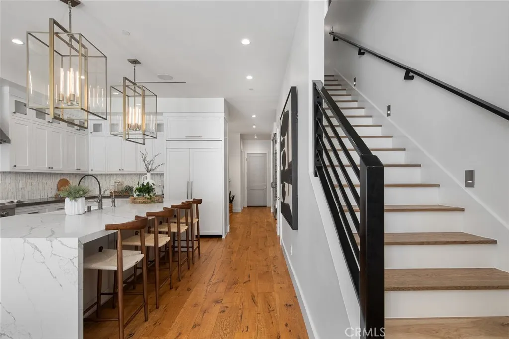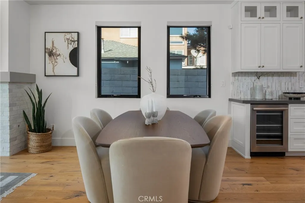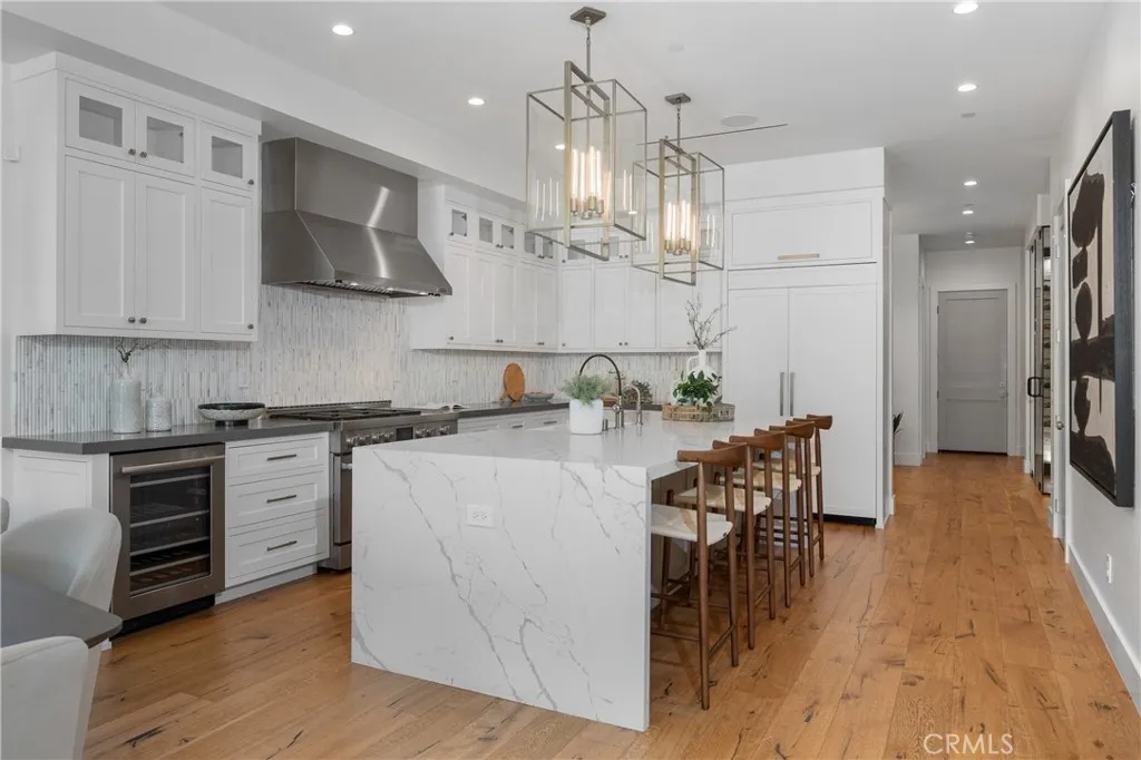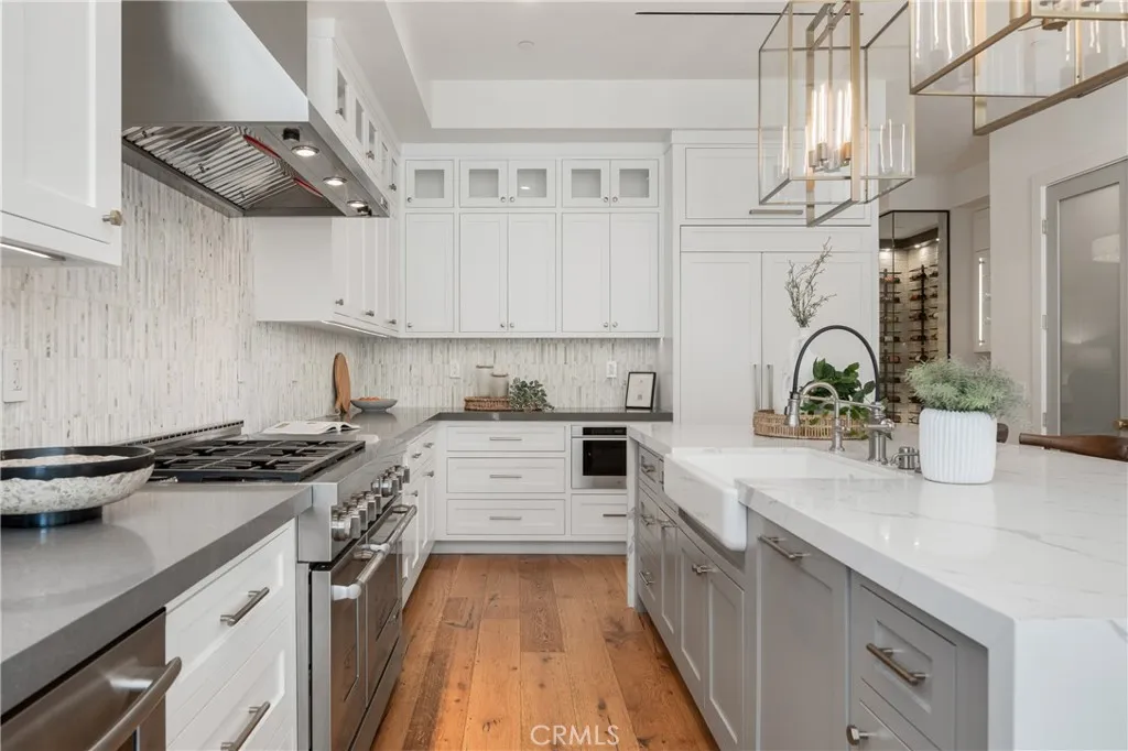Experience elevated coastal living in this newly built modern farmhouse, ideally situated less than one mile from Pacific Coast Highway in the heart of Huntington Beach. Designed to capture the essence of refined seaside living, this residence combines timeless craftsmanship with contemporary elegance just moments from Main Streets acclaimed dining, boutique shopping, and vibrant entertainment as well as walking distance to the beautiful outdoor shopping venue, Pacific City. The inviting 800 sq.ft. front patio sets a distinguished first impression, offering an idyllic setting for open-air gatherings with a built-in fire pit, barbecue, artificial turf, and thoughtfully illuminated landscaping. Inside, expansive bi-fold doors open to create a seamless indoor-outdoor flow, uniting sophisticated design with relaxed coastal ambiance. At the heart of the home, the chefs kitchen features stunning white quartz countertops, a marble backsplash, a walk-in pantry, and a grand center island. Professional-grade appliances include a six-burner double oven range, complemented by Restoration Hardware lighting and custom cabinetry that exude luxury and functionality. Distinctive touches throughout the home include an 80-bottle glass wine room, a versatile den with a Murphy bed, and multiple en-suite bedrooms that provide comfort and privacy for family and guests. The primary suite is a true retreat, offering a private fireplace and a spa-inspired bath designed for indulgence and tranquility. The third-floor bonus room enhances the homes entertainment appeal with a wet bar and private terrac