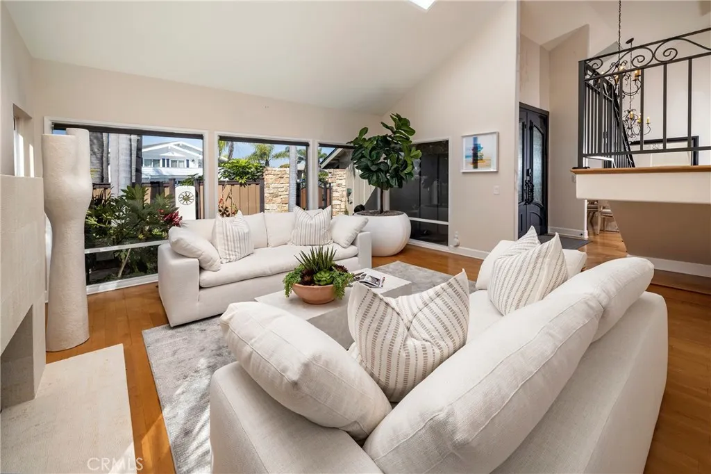 Discover luxury coastal living in this stunning 4-bedroom, 2.5-bath custom home located on prestigious Humboldt Island in Huntington Harbour. Situated on one of the islands largest lots, this 2,433 sq ft residence has been thoughtfully upgraded. The expansive backyard is a true private oasis, perfect for entertaining or relaxing in style. Enjoy a sparkling new pool with soothing water features, a Baja shelf, submerged seating, and a bubbling spa. The outdoor kitchen is outfitted with Quartz stacked-stone finishes, a built-in sink, refrigerator, and premium FireMagic grill. Surrounded by lush tropical landscaping, stacked stone planters, and scored concrete decking, the space is completed by a covered patio and artificial turf. Impressive curb appeal greets you with stacked stone siding, a new roof, manicured grounds, an interlocking paver driveway with EV charging station, and a private gated courtyard. Step through double wrought iron and rain glass entry doors into a light-filled interior featuring soaring ceilings, multiple skylights, and refinished Maple hardwood floors. The open-concept floor plan includes a dramatic staircase with wrought iron railings, a grand foyer, a spacious formal living room with walls of glass and a custom fireplace, and an elegant formal dining room ideal for entertaining. The chefs kitchen boasts Narcarado Quartzite countertops, subway tile backsplash, Mahogany cabinetry with hand-blown glass insets, pull-out drawers, and premium appliances including a Thermador 5-burner cooktop, Wolf oven, and Wolf microwave. It opens to a sunny breakfast no