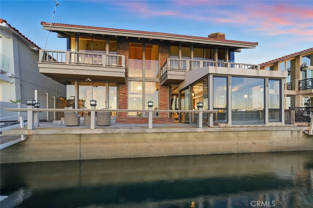 Location, Location, Location!!! Located in one of Huntington Harbours most coveted Main Channel positions, this waterfront residence enjoys unrivaled multi-channel views from its premium curve setting on Humboldt Island. This property is a true blank canvas in original (1975) condition so bring your contractor to see this fixer. Located in a premier multi-million-dollar Main Channel location and offers exceptional potential for a full redesign, reimagination, or custom rebuild to maximize its world-class setting. With approximately 2,775 square feet, the home is a mid-century modern and features 4 bedrooms and 3 bathrooms, including a main-level bedroom and bath. Beyond a large gated front courtyard, the entry opens to soaring ceilings, architectural brick accents, and a floating spiral staircase, all oriented toward sweeping water views. The main living spaces are designed to showcase the waterfront setting, including a living room with a classic brick fireplace and walls of glass that open to a Harbour-view sunroom. The dining room features dramatic volume and natural light, and the kitchen and breakfast area also enjoy water views. Upstairs are three bedrooms, including the primary suite which captures breathtaking Harbour views and features wood-beamed cathedral ceilings, a fireplace, a private balcony, and an ensuite bath with walk-in shower and dual vanities. Outside, a large waterfront patio leads to an approximately 45-foot private boat dock that can accommodate two or more vessels, creating an exceptional setting for boating, entertaining, and year-round coastal en