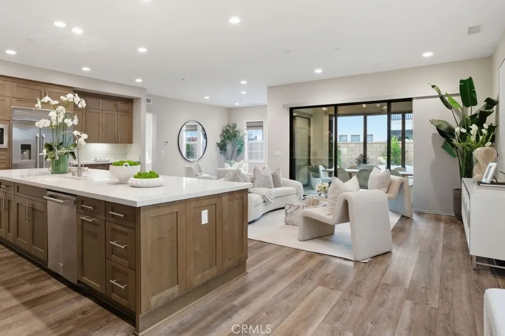 Discover an extraordinary opportunity to own one of only 111 exclusive residences in the prestigious Parkside Estates. Perfectly positioned near Bolsa Chica State Beach, this coastal community is surrounded by 20 acres of open space, a wildlife habitat preservation area, and picturesque walking trails leading directly to the ocean. This modern craftsman masterpiece is one of only 21 homes with this highly sought-after floor plan, offering over 3,800 sq. ft. of refined living space with dual living quarters, ideal for multi-generational living or hosting guests in comfort and style. With 5 bedrooms and 5.5 bathrooms, this residence perfectly balances sophistication and functionality. Step inside to a dramatic 20-foot-plus ceiling foyer adorned with maple handrails, glass-panel staircases, and designer lighting, setting the tone for the homes elevated craftsmanship. The chefs kitchen boasts an expansive 11-foot quartz island, premium stainless-steel appliances, and seamless flow into the open-concept great room and formal dining areaperfect for entertaining. The main-level primary suite is a serene retreat featuring a spa-inspired bath with a soaking tub, a 7-foot glass shower, and a 10-foot dual-vanity dressing area. A separate 13 15 custom wardrobe room with washer/dryer hookups adds a touch of bespoke luxury and practicality. A second ensuite bedroom downstairs offers added flexibility for guests or extended family. Upstairs, discover three spacious bedrooms, each with its own ensuite bath and walk-in closet, plus a versatile bonus room with private balcony and a wet bar