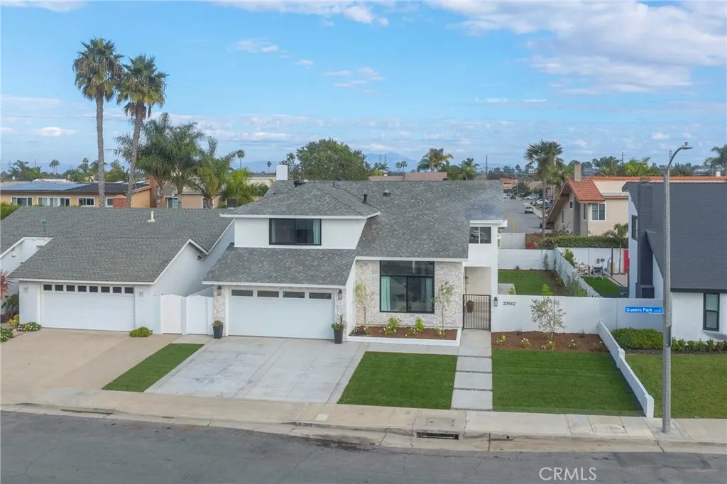 Situated in one of the most sought-after neighborhoods of South Huntington Beach, this 5 bedroom, 3 bathroom, Expanded Port Royal Model has been brought down to the studs and completely reimagined with a perfect blend of coastal charm and modern luxury. As you arrive, youll be immediately impressed by the homes exceptional curb appeal, boasting fresh landscaping including sod, irrigation front and back, and newly poured concrete for a clean, modern look. Step inside to discover a large living room with vaulted ceilings and expansive windows, creating an airy, light-filled space that sets the tone for the rest of the home. The open-concept floor plan flows effortlessly, showcasing designer finishes, recessed lighting, and luxury vinyl plank flooring throughout. The gourmet kitchen is a true showpiece, featuring quartz countertops, custom soft-close cabinetry, high-end stainless steel appliances, and an oversized islandideal for casual dining or entertaining. The spacious family and dining areas flow seamlessly together and include a cozy fireplace for added warmth and ambiance. Upstairs, the primary retreat offers a luxurious escape with a beautifully remodeled en-suite bathroom, including a dual-sink vanity, large walk-in closet, soaking tub, and separate shower with dual shower heads. Three additional bedrooms are also located upstairs, while the fifth bedroom and a full bath downstairs provide flexibility for guests. Additional highlights include an inside laundry room, epoxy-finished garage with newly installed garage door & opener, freshly poured, oversized concrete dri