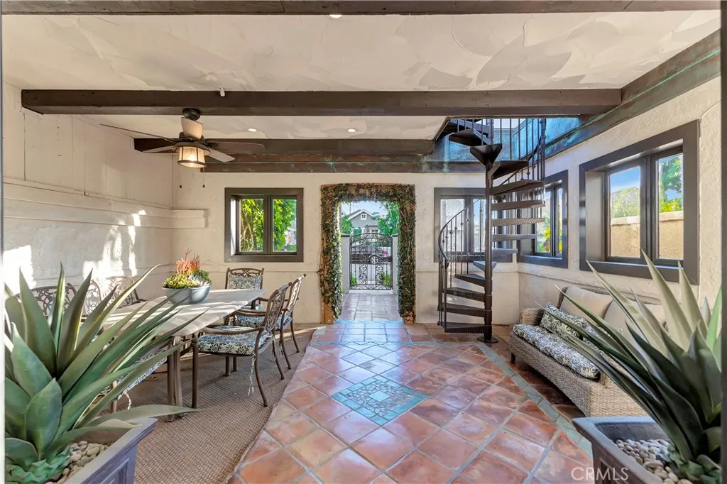Just minutes from Downtown Huntington Beach, the iconic pier, Pacific City, and the ocean, this stunning Spanish-style single-family home offers the perfect blend of coastal location and timeless design. Spanning nearly 2,600 square feet, the residence showcases beautiful Spanish tile flooring throughout the main level, intricate wood and iron detailing, and a charming ivy-covered exterior with a covered front patio/California room ideal for entertaining. Double entry doors welcome you into a formal living room with a cozy fireplace, flowing seamlessly into the family room, dining room with built-in cabinetry, and a thoughtfully designed kitchen. The kitchen features stainless steel appliances, granite countertops, a breakfast bar, and a breakfast nook, with direct access to the attached two-car garage. Upstairs, youll find three spacious en-suite bedrooms finished with stylish hard-surface flooring. The primary suite is a true retreat, offering dual vanities, a soaking tub, walk-in shower, and a generous walk-in closet. Both secondary bedrooms include their own private bathrooms, with one featuring a large deck and spiral staircase leading down to the front covered patio. The third level reveals an expansive rooftop deck, perfect for relaxing or entertaining under the coastal sky. Recent upgrades include a new roof, new central A/C and split system, tankless water heater, and fresh interior paint. This exceptional home combines classic Spanish charm with modern comfort in one of Huntington Beachs most desirable locations.