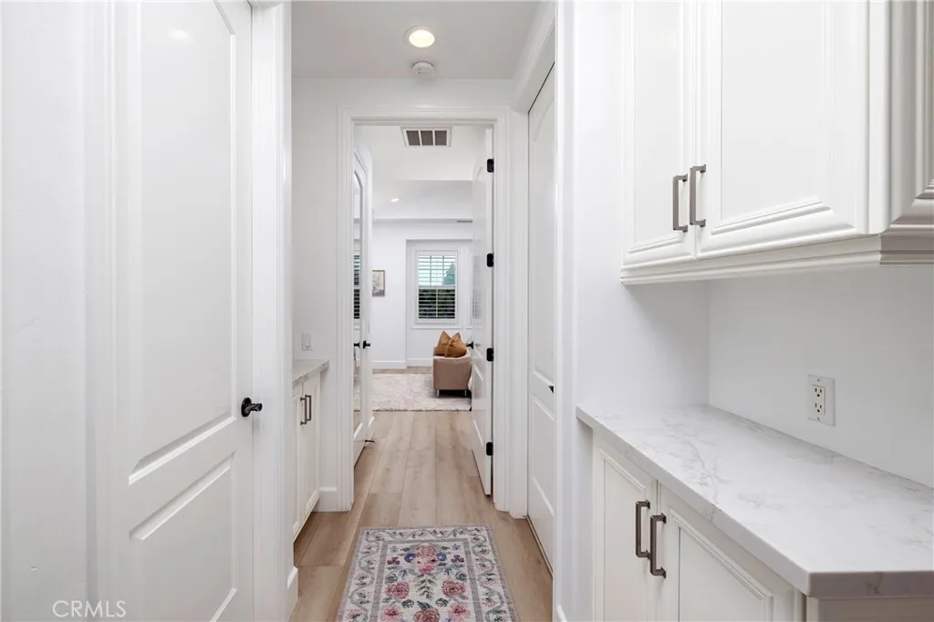 Ideally positioned at the end of a cul-de-sac in the coveted and highly desirable community of Brightwater, this Plan One Trails Model is situated overlooking the wildlife sanctuary tucked inside the quaint interior tract. The home is truly turn-key and has been updated with gorgeous luxury flooring, fresh paint on all interior walls and cabinets, new light fixtures, and endless high-end amenities throughout. This 1797 SF three bedroom, two and a half bath property offers a two-car garage with added built-in storage including racks and cabinets, and an oversized three-car driveway. Coastal energy, charming warmth, and attention to detail make this home so appealing. The primary suite showcases two spacious closets with built in storage, a relaxing soaker tub, separate shower and double vanities. The two additional bedrooms feature finished closets and a shared full bathroom. The kitchen is open and bright with a large eat-at island and high-end Viking and Wolf appliances. The exterior grounds have been professionally designed to include drought conscious, low maintenance, and beautiful landscaping in the front and back yards, including a tranquil water feature, lighting, turf and a built in BBQ and bar. Easily stroll to the community pool or Wetlands hiking paths, just a short distance away. The house has PAID FOR solar, and an electric vehicle charger with low HOA fees, access to two community pools, the Clubhouse, parks and many trails nearby. Huntington Harbour, Bolsa Chica State Beach, shopping, dining, Meadowlark Golf Course, excellent and award-winning schools and eve