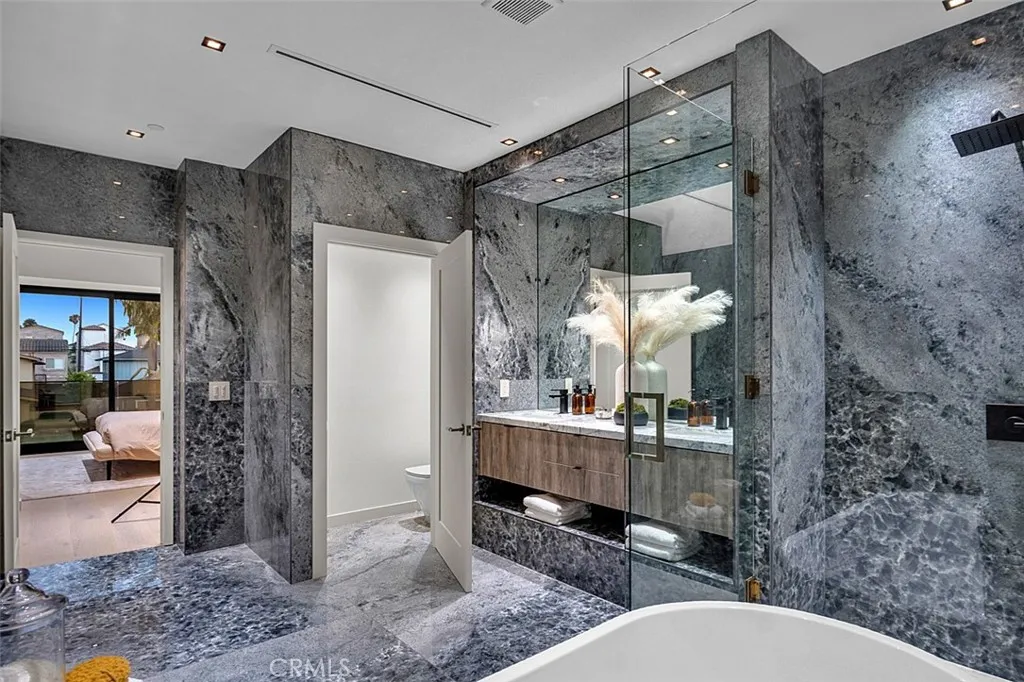 Huge price reduction! Experience the pinnacle of coastal elegance in this stunning brand-new beach estate, perfectly situated in the heart of Downtown Huntington Beach. Encompassing 2,857 square feet, this meticulously designed residence harmoniously blends sophisticated style with high-end functionality. Featuring three luxurious en-suite bedrooms, a spacious family lounge, and a remarkable third-floor luxury suite with an expansive deck, this home is ideal for modern living and entertaining. The expansive great room invites the refreshing coastal breeze through wide LA Cantina doors, showcasing sleek porcelain flooring and striking custom tilework. The chefs kitchen is a culinary delight, boasting a grand island with Calcutta Turquoise countertops, an Onyx Velluto backsplash, and premium appliances. The primary suite offers a serene retreat, complete with a private balcony, spa-inspired bathroom, and a custom walk-in closet. Additional highlights include a finished two-car garage with epoxy flooring and dual rooftop decks featuring breathtaking views. Dont miss this opportunity to embrace luxurious coastal living in your dream home!