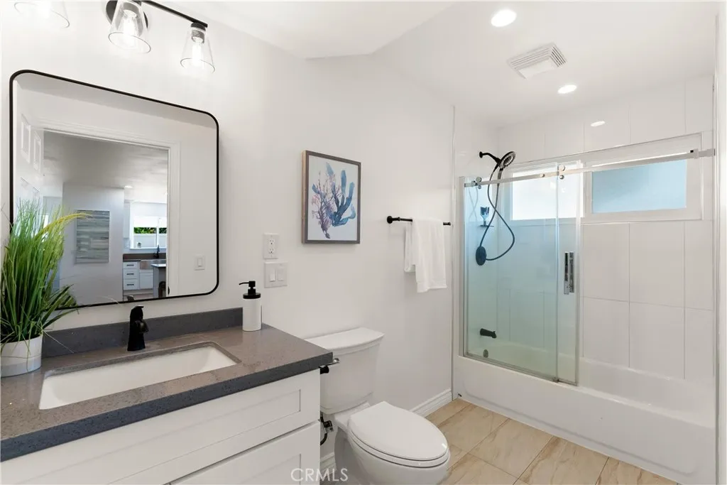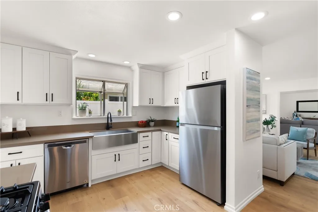 Inside the Sunkist Plaza tract of Huntington Beach you will find this single-story upgraded 3 bedroom, 2 bathroom home with a remodeled quartz kitchen, open-concept living, wide-plank flooring, dual-pane windows, recessed LED lighting, and a low-maintenance private yard designed for indoor-outdoor coastal living. Move-in ready with updated systems, central AC, and a functional layout buyers are actively searching for in Northwest HB. Just minutes to Bella Terra, Clegg/Stacey schools, Clegg-Stacey Park, and quick freeway access, plus the beach is only a short drive away. This home brings together the features Huntington Beach buyers value most: a bright, open layout, modern finishes, energy-efficient improvements, and a single-level design that makes daily living easier and more enjoyable. The kitchen features quartz counters, an expanded peninsula, stainless appliances, updated cabinetry, and a direct connection to the dining and living areas, all creating the gathering space and natural flow todays buyers want. The primary suite includes an updated bath, large step-in shower, and ample closet space. Secondary bedrooms offer flexibility for guests, work-from-home setups, or growing households. Both bathrooms feature modern tile, updated vanities, and clean, neutral finishes aligned with current buyer preferences. Outside, the recently designed, private yard offers a perfect blend of low-maintenance hardscape, room to relax or entertain, and the ability to personalize further without the upkeep of a larger lot. The attached two-car garage, wide driveway, and ideal tract loca