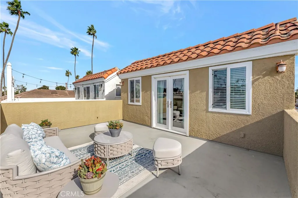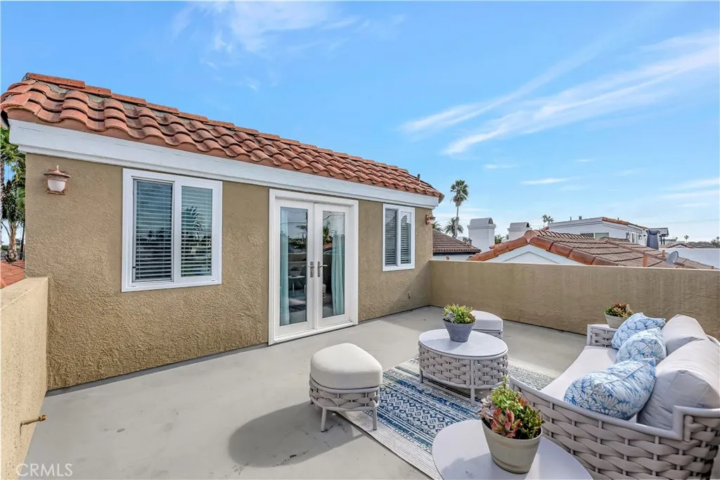 Only five blocks from the sand and moments from downtown, this standout Huntington Beach home offers a refined take on coastal living. Spanning approximately 2,700 square feet, it combines refined design, custom craftsmanship, and effortless livability in one beautifully curated package. Inside, natural light and elegant upgrades define the open-concept layout. The main level features a welcoming living room with a cozy fireplace and access to a private side yard, a half bath, and a convenient laundry room with sink that connects directly to the two-car garage. The chef-inspired kitchen is a true centerpiece, showcasing custom ceiling with wood beams, shaker cabinets, a spacious center island with bar seating, a built-in breakfast nook, and premium stainless steel appliances. The space flows easily into the formal dining area and out to a private front patio complete with a firepit, perfect for relaxed evenings and ocean breezes complete with a gas line to easily add a built-in BBQ center. Upstairs, the primary suite offers a tranquil escape with a double-sided fireplace, a generous walk-in closet, balcony, and a spa-caliber bathroom with dual vanities, a soaking tub, and a walk-in shower. Two additional bedrooms and bathrooms are thoughtfully positioned nearby, while a bonus room with soaring ceilings and a fireplace creates the perfect spot for a media room, lounge, or home office. A versatile loft on the upper level opens to the rooftop deck, where panoramic views set the stage for unforgettable entertaining or quiet sunset moments. With three fireplaces, stylish hard-su