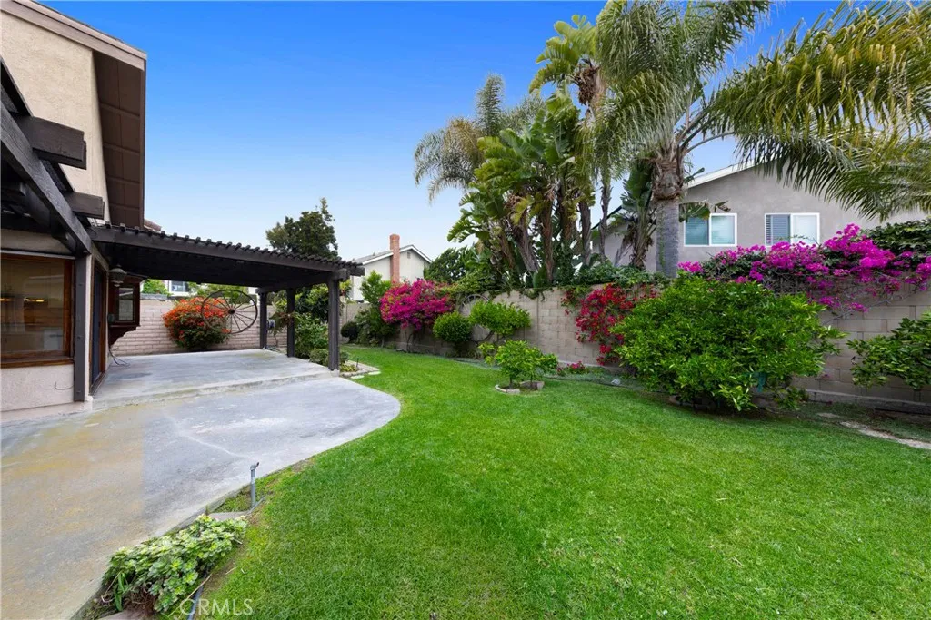 Rare opportunity to own in the desirable Park Place community! This impressive Huntington Beach location is a mile from the beach, has a lush park nearby, and is walking distance to highly regarded schools. The home is spacious with four bedrooms and three bathrooms on an oversized lot in a prime, quiet street location. The light and bright living room has multiple windows, a sky light, plantation shutters, and a vaulted ceiling. The recently remodeled kitchen features quartz countertops, stainless-steel appliances, including a new, Bosch double oven. The downstairs family room has a granite and ledger fireplace. There is an upgraded, main floor bathroom and main floor bedroom used as an office, with built-in shelves and drawers. Separate laundry room with cabinets. Large Master Bedroom with a large walk-in closet, plus a second closet. The master bathroom has a vanity and a separate Bathroom. The large, front driveway has colorful pavers, and the homefront has a Ledger Stone Faade. The private backyard is perfect for entertaining, featuring fruit trees, flowers, potted plants, and a covered patio! There is an attached three-car garage with shelves and cabinets for storage, and an extra sink. Upstairs is an attic with a pull down, staircase ladder. This home has Solar installed! Nearby is the Huntington Beach Pier, downtown Main Street shopping and restaurants, plus the popular Pacific City. Don't miss this extraordinary opportunity to live in one of the best neighborhoods in Huntington Beach, California!