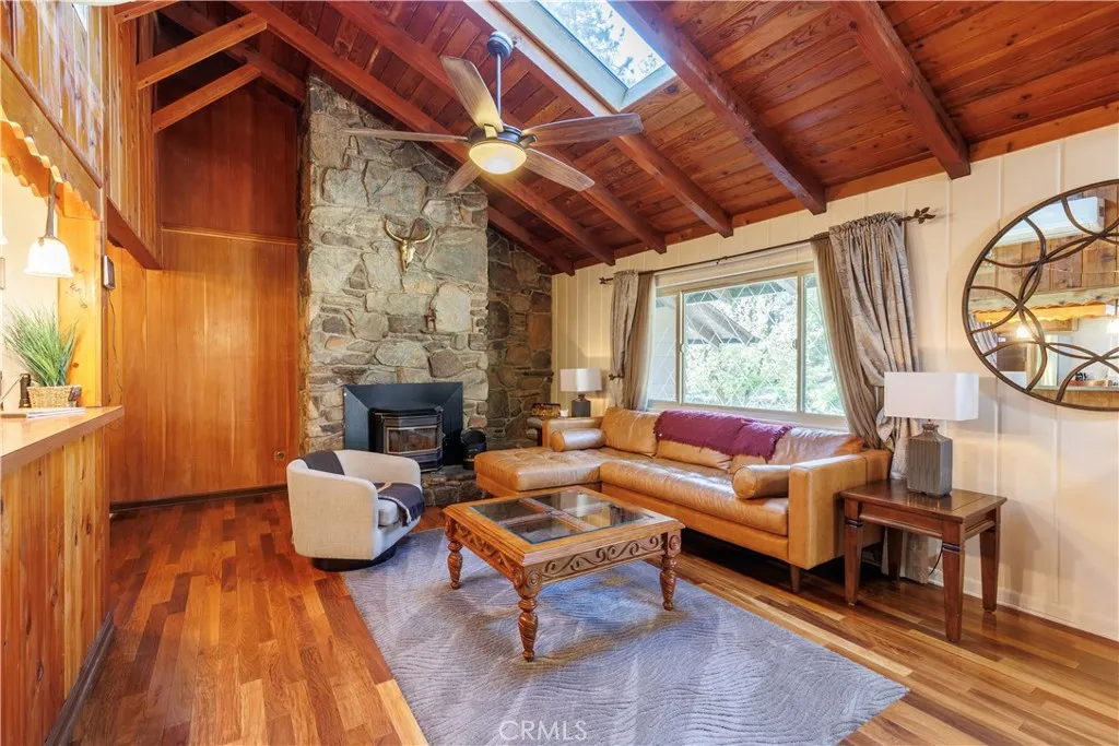 CREEKSIDE CABIN! A perfect location just before town, alongside Strawberry Creek. Properties like this don't come up often. Take a dip into the creek, cross the creek to the other side, or walk along the creek on what feels like your own well maintained personal dirt trail to the organic bakery, brewpub, post office, pizza shop, town and more! This magnificent Multi-use property has one of the most enchanting locations in all of Idyllwild. A single-family residence set up as a duplex with a 2 bedroom + 1 bath unit & a 2 bedroom + 1.5 bath unit. Both living spaces have magnificent rock fireplaces (one with an insert). Each unit has its own garage, which is quite rare in Idyllwild, plus parking for 10 cars or an RV + boat. These comfortable units have been upgraded with smart features that don't take away from the cabin feel and rustic charm. Both units have been beautifully maintained and show pride of ownership. The stylish and comfortable furnishings provide for a turnkey investment! A new owner could leverage this investment opportunity by renting one unit out and keeping the other for their personal mountain escape or you may rent out both! It is ideal for an owner/occupant who would like to subsidize his/her/their own mortgage. It's perfect for an investor and great for families as well! Properties on the creek, as well as properties with a garage, are extremely rare in Idyllwild and this extraordinary property has both (and not just one, but two garages). If you're longing for quiet days relaxing on the deck with the magical sounds of the creek steps from your home, an
