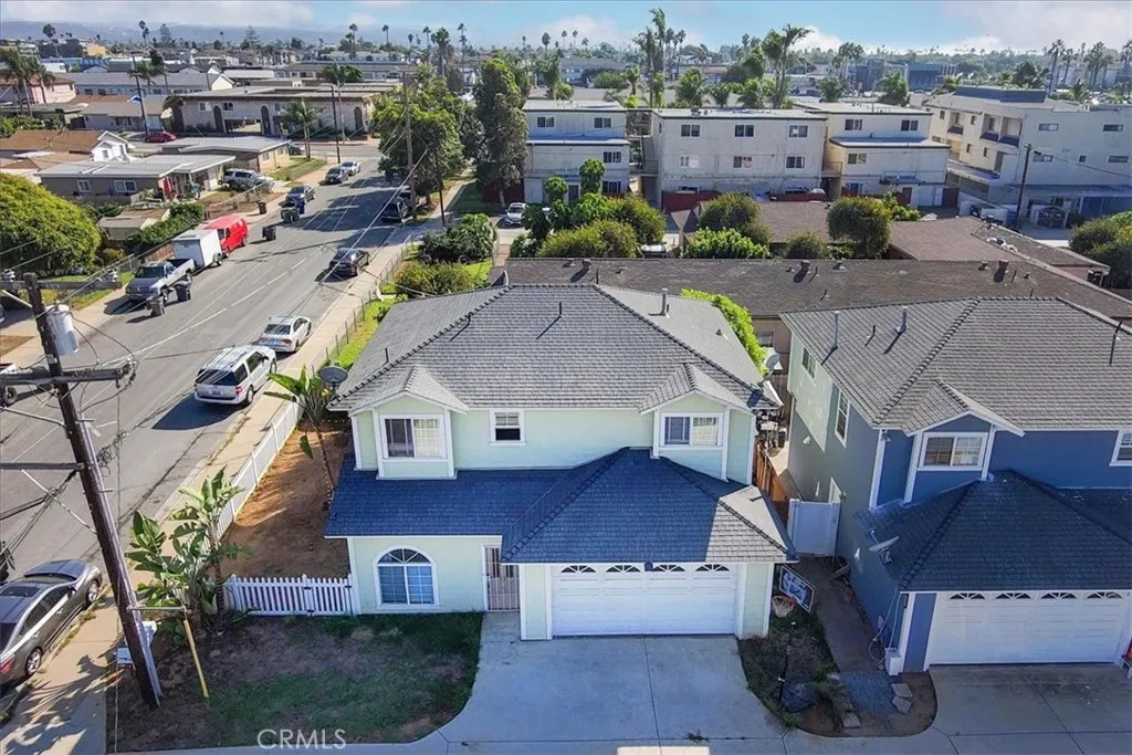Welcome to coastal living in Imperial Beach! This stunning new-construction modern two-story home offers the perfect blend of style, comfort, and functionality. Featuring three spacious bedrooms and two and a half baths, this home showcases an open-concept living area filled with natural light, a modern kitchen with granite countertops, and high-end stainless steel appliances including an electric stove, microwave, refrigerator, dishwasher, and washer/dryer. The kitchen also includes a spacious walk-in pantry, perfect for extra storage and organization. The versatile downstairs front room can serve as a home office, gym, or meditation space. Upstairs, the luxurious primary suite accommodates a California king bed and offers two closets, a sitting area, dual sinks with generous storage, a soaking tub that retains heat, and a large walk-in shower with skyline views of San Diego. The additional bedrooms provide ample space and share a well-appointed hall bath. Energy efficiency and comfort come together with a whole-house attic fan to help cool the home during the warmer months. Outside, enjoy a private fenced backyard featuring a wooden patio with sitting area and a wrap-around patio for additional storage. The yard also includes mature pomegranate and walnut trees, adding a touch of natural beauty to your outdoor retreat. A two-car garage with driveway and street parking provides plenty of space for vehicles, while the homes thoughtful layout ensures modern convenience throughout. Ideally located just one mile from the beach, within walking distance to schools, local restaur