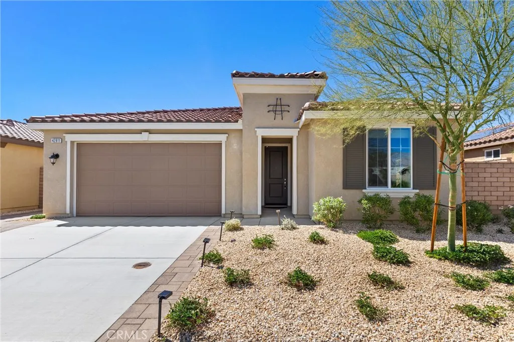 Welcome to this stunning 2023-built home in the prestigious Four Seasons at Terra Lago, an exclusive 55+ gated community in Indio, one of Riverside County's fastest growing cities. This meticulously upgraded residence offers 2,152 square feet with 2 bedrooms, 2.5 bathrooms, and a flexible optional third bedroomperfect for a home office, craft room, or guest suite. Step inside to discover premium luxury vinyl plank flooring flowing throughout the main living areas, with plush carpeting in the bedrooms. The gourmet kitchen showcases elegant quartz countertops, stylish backsplash, and an oversized island perfect for entertaining. Upgraded lighting fixtures create the perfect ambiance, while the added fireplace adds warmth and sophisticationa rare and coveted feature in this community. The backyard is a true entertainer's paradise requiring virtually no maintenance! Professionally landscaped with artificial turf, beautiful pavers, and a charming gazebo, this outdoor oasis is move-in ready. Fresh fruit trees add a delightful touch, allowing you to enjoy homegrown citrus. With spectacular mountain views as your backdrop, this turnkey space is perfect for hosting or relaxing. Four Seasons Terra Lago boasts an impressive 22,000 sq ft recreational facility featuring a state-of-the-art fitness center, salon, yoga studios, library, billiard room, ballroom, bistro, & indoor/outdoor pools. Enjoy golf, tennis, pickleball, & countless organized activities. Located minutes from the Acrisure Arena, casinos, hiking, golf & dining/shopping in Indio. Easy freeway access puts La Quinta, Palm De