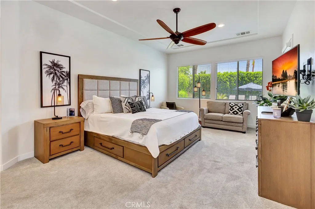 This is an absolute show stopper! FULLY FURNISHED Residence 2 plan with 6 bedrooms & 4.5 bathrooms completely upgraded. Wide plank wood tile flooring flowing into the open concept living space. Quartz and Granite counters, upgraded cabinets, 5 1/2 inch baseboards, built in fireplace, 8ft doors, and 10ft ceilings. Casita excellent for additional family or to rent out separately. Amazing air conditioned garage converted into a game room with flooring, built in refrigerator, foosball, shuffle puck, & pool table etc... This home has it all! Don't overlook the incredible private backyard perfect for entertaining. Features include newer pool & spa, Pergola covered patio, fire pit, & $10,000 worth of Sonos speakers. Orchard is approved for 5 short term rentals per year during the festivals. Perfect for a primary or secondary home with the ability to rent during festival season.