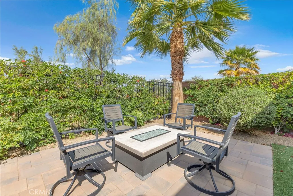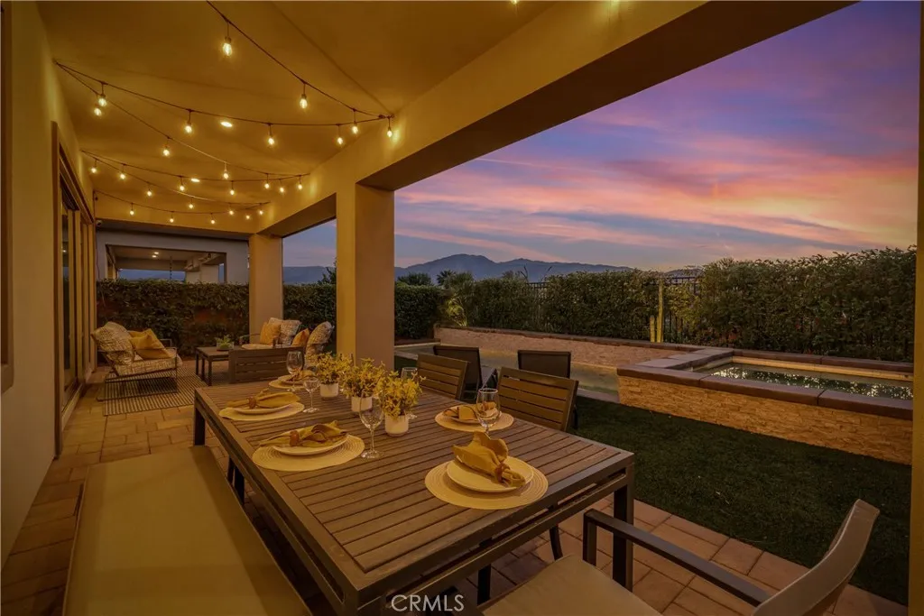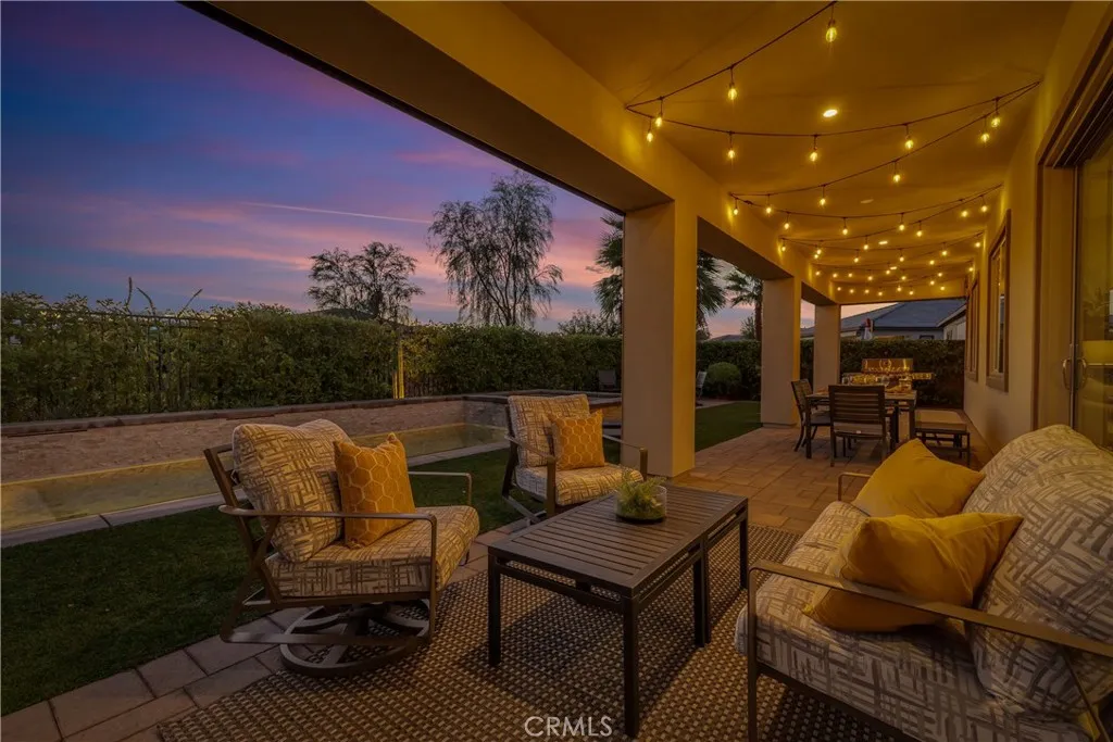 Your desert retreat in the impeccable Trilogy at The Polo Club - 55 or better section. This 3 bedroom, 4 bath home with a bonus room/ office was designed with every upgrade imaginable, and showcases an open floor plan that includes seamless indoor/ outdoor flow for both entertaining and resort-style living. The immaculate kitchen features a jumbo island with breakfast bar, luxury stainless steel appliances, and contemporary finishes. The dining area, situated just off the kitchen, has a stunning view through the large-format three-panel sliding glass door perfect for catching those spectacular sunsets the valley is known for. All of this is open to the great room, where a custom built-in TV and fireplace accent wall create the perfect space for catching up with friends, watching TV, or reading a book. Outside, your private oasis awaits: the sparkling pool and spa, fire table, and covered patio make for easy enjoyment year-round. Consider with that the large surrounding hedges, no neighbor behind you, and a premium key lot location, and youll enjoy peace, privacy, and wide-open views of the Santa Rosa mountains. Additional features include a finished two-car garage plus a golf cart garage, laundry room, upgraded flooring, and thoughtful touches that make this home comfortable and luxurious. Conveniently located close to the gate for easy access, this property also offers a transferable membership to the acclaimed Trilogy Polo Club lifestyle, with resort-style amenities, social events, and community connections just waiting for you.