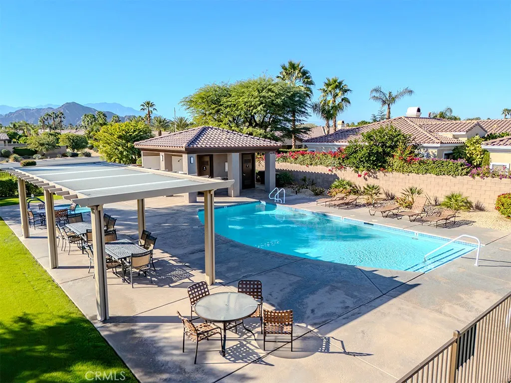 THIS IS THE ONE YOU YOU HAVE BEEN WAITING FOR! Not anymore. It is here. This community of only 140 units is very stable and at the present time this is the only one available in this attractive complex. New owner only has to bring personal items because this is fully furnished with good quality furniture and appliances, it has a pebble tech swimming pool, spa, b-b-q center, and much more. This is truly a turnkey beautiful house. The floor plan is very convenient with two master suites in the West side and two bedrooms and a bath in the East side. One of the bedrooms is a casita with a separate entrance. The outdoor is really a place to be proud of with the gas firepit for comfort in the cool nights. The 3 car garage is very attractive with epoxy finished and plenty of cabinets for storage. The laundry room with washer and drier has a soaking tub and plenty of cabinets. This house is short distance to the Polo Grounds and short distance to shopping and dining in La Quinta. GATED COMMUNITY WITH VERY LOW HOA FEES. THIS DEVELOPEMENT ALLOWS RENTALS WITH THIRTY ONE DAYS MINIMUM. SELLER IS MOTIVATED!!