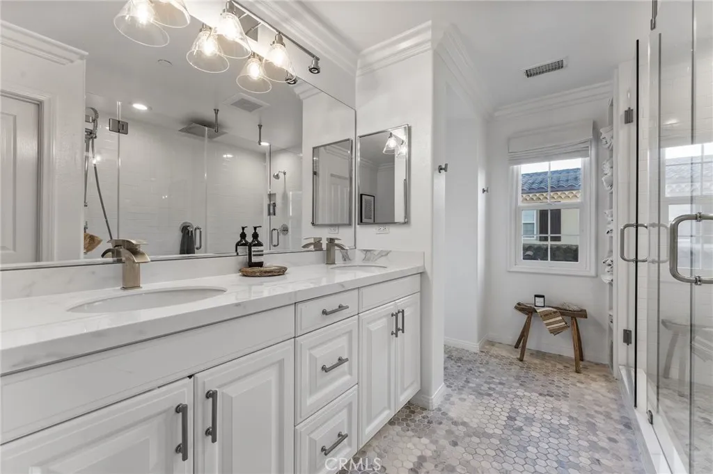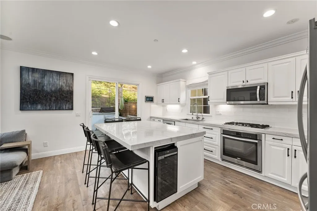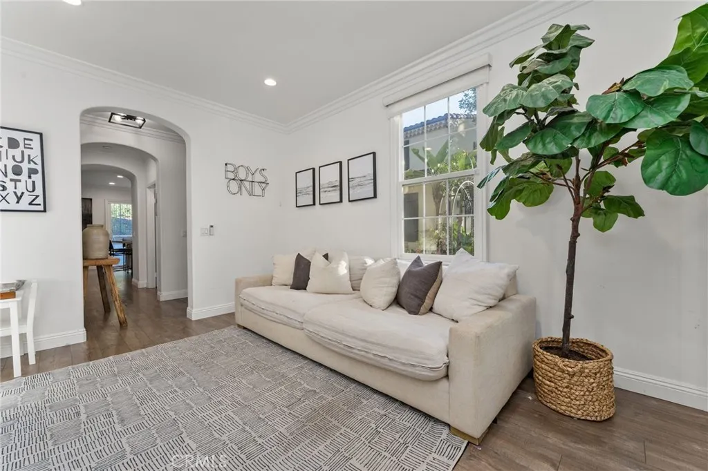 RARE Opportunity- this special Arborel 3X residence is sited on an oversized corner lot with its own large driveway. This highly desired Plan 3X residence offers exceptional privacy with just one neighboring home, and is larger than a standard Plan 3 with an oversized downstairs office/den. Welcome inside a light-filled main level with hardwood type floors throughout. At the heart of the home is the great room, complete with a family room with fireplace and built-ins that flows into the gourmet kitchen perfect for both entertaining and everyday living. The kitchen features a massive island with seating, designer finishes, quality stainless appliances, a built-in wine fridge, and a large walk-in pantry. Sliding doors open to your backyard retreat with a spacious patio and lawn, equipped with a built-in BBQ ideal for outdoor gatherings. Upstairs, three bedrooms and two full baths include your primary suite with a luxurious en-suite bathroom. The primary bath showcases double sinks, an expansive walk-in spa like shower, and a spacious walk-in closet. The attached two-car garage provides ample additional storage space. Arborel residents enjoy celebrated community amenities including resort-style pools, spa, cabanas, clubhouse, BBQ areas, and hiking trails, all within minutes of top-rated schools, beaches, and premier shopping and dining destinations. A rare combination of privacy, space, and amenities in this sought-after community.