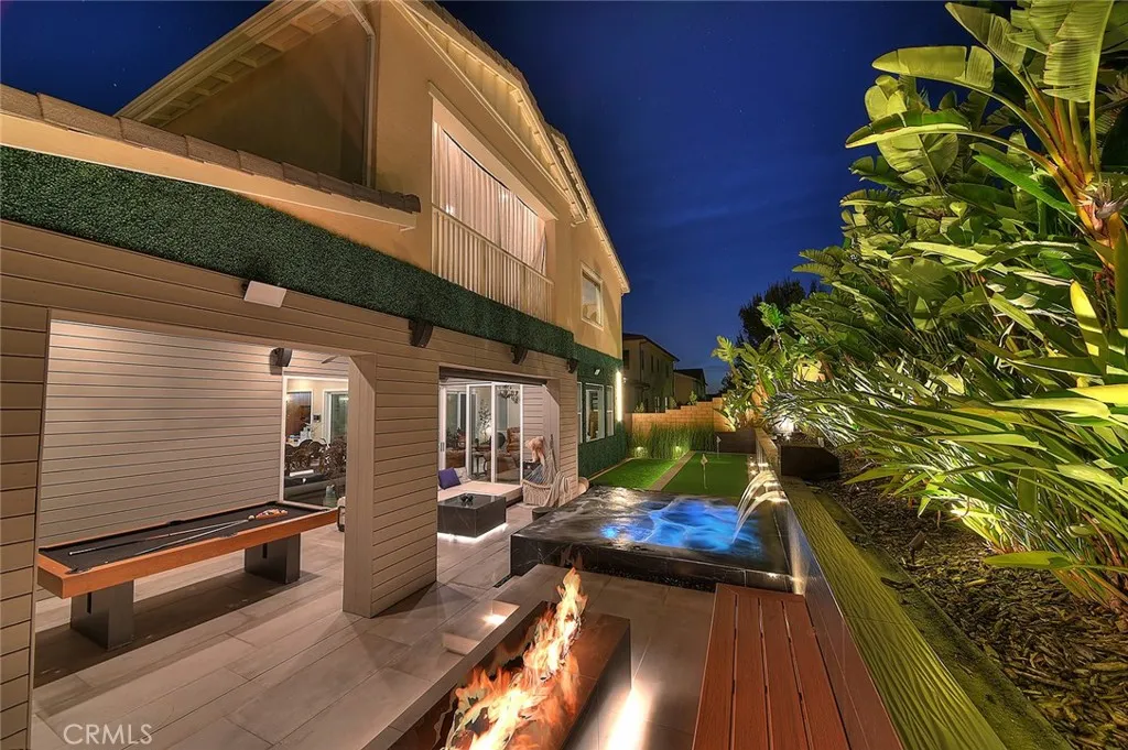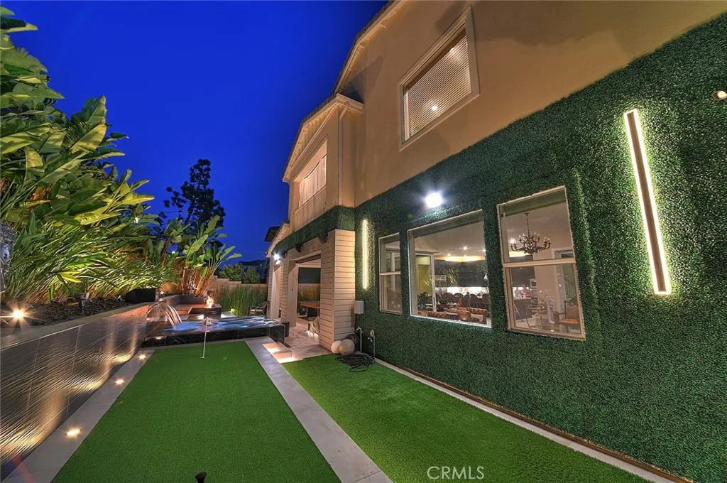 A beautifully maintained residence in the highly sought-after Great Park neighborhood of Irvine, offering approximately 4,617 square feet of thoughtfully designed living space. This expansive home features 5 bedrooms, 5 full bathrooms, and 2 half bathrooms, blending comfort, functionality, and modern elegance. The open-concept floor plan is filled with natural light and seamlessly connects the main living, dining, and kitchen areas, creating an ideal setting for everyday living and entertaining. The gourmet kitchen features modern cabinetry, quality appliances, a spacious center island, and an oversized walk-in pantry. A desirable main-level bedroom and flexible living spaces, including a loft and multi-purpose areas, provide options for a home office, gym, or extended living. This home has been extensively upgraded with over $600,000 in improvements, with major investment in professionally designed front and backyard landscaping. The backyard is a private resort-style retreat featuring a custom-built elevated spa with waterfall features, ambient LED lighting, and premium stone finishes. A custom putting green adds a unique entertainment feature rarely found in the neighborhood. The outdoor space includes high-end hardscape, built-in seating, modern retaining walls, and mature landscaping for privacy and tranquility. Designer lighting and a decorative Buddha feature wall create a serene, spa-like environment. The California room and upgraded sliding doors seamlessly connect indoor and outdoor living. Interior upgrades include custom closets, upgraded flooring, designer wall