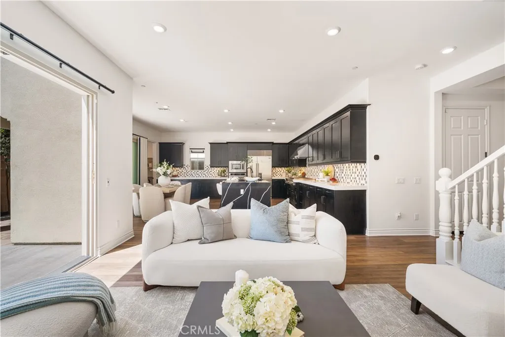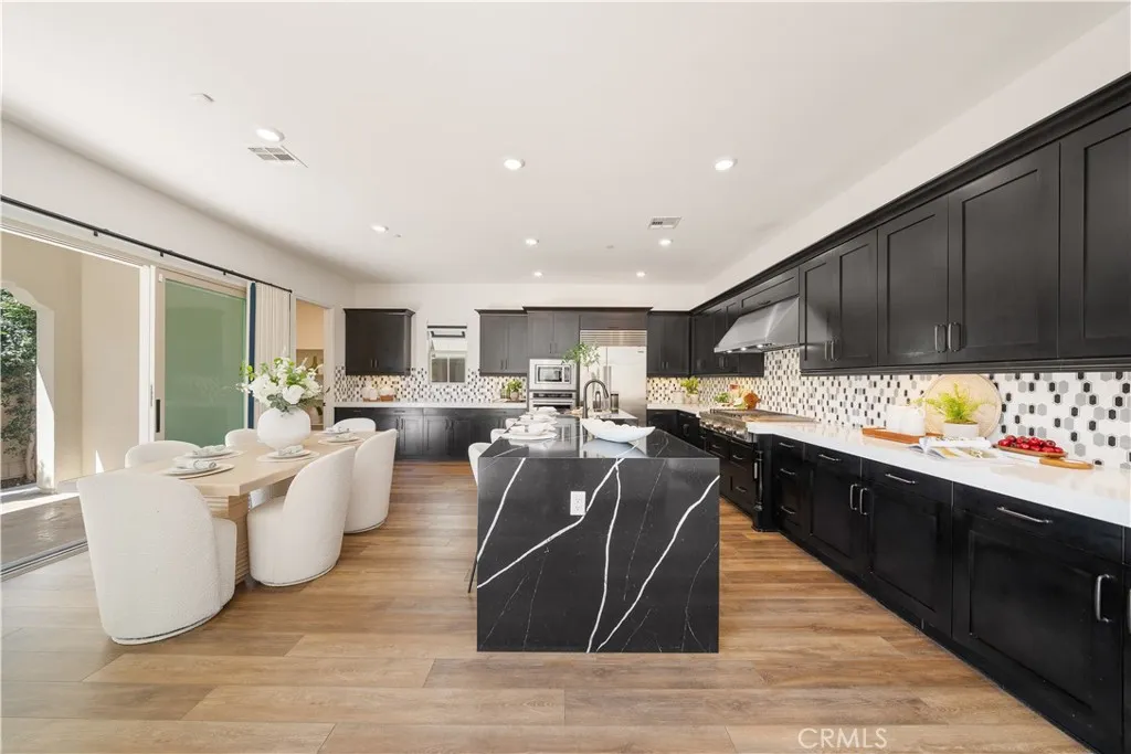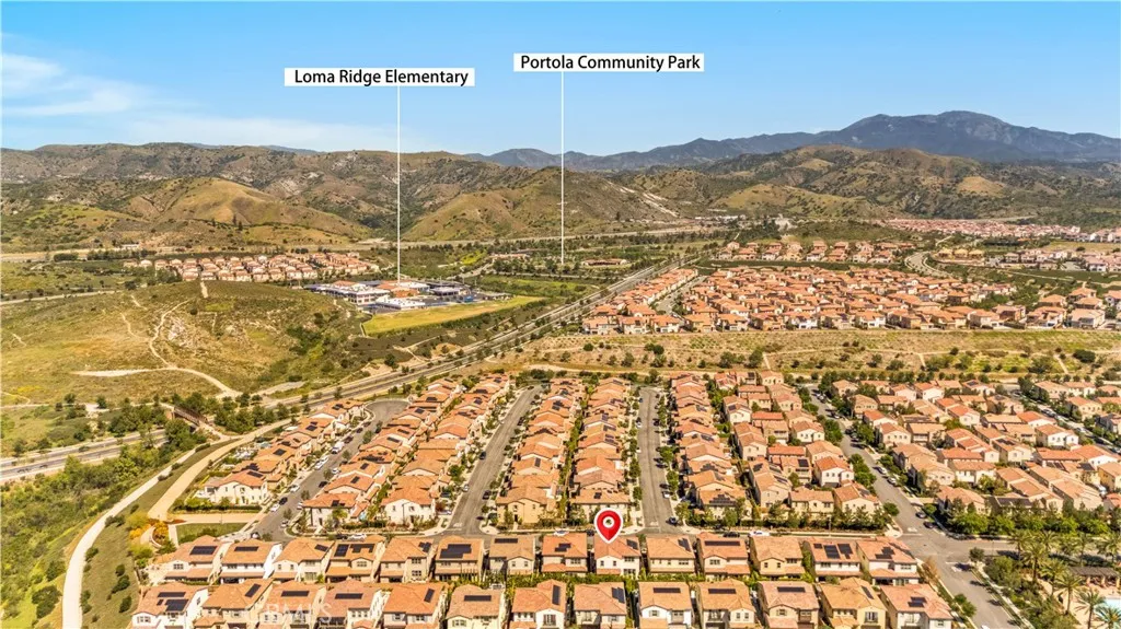 Located in the highly desirable Portola Springs community, this beautifully upgraded single-family home offers 4 bedrooms, 4 bathrooms, and a spacious upstairs loft within a bright, open-concept layout designed for modern living. Luxury vinyl plank flooring runs throughout, creating a clean, cohesive, and low-maintenance living environment filled with natural light and complemented by tranquil mountain views. The chefs kitchen serves as the centerpiece of the home, featuring a striking waterfall-edge island, upgraded quartz countertops with enhanced edge detail, a full designer backsplash, and maple cabinetry with upgraded hardware and soft-close drawers. A premium 42-inch built-in Sub-Zero refrigerator anchors the space, while the open layout seamlessly connects to the dining and living areasideal for both everyday living and entertaining. The primary suite offers a spa-inspired bathroom with quartz shower walls, frameless glass enclosure, freestanding soaking tub, quartz countertops, and upgraded tile flooring. Additional bathrooms are tastefully finished with upgraded tile details, reflecting consistent quality throughout. Designed with both comfort and efficiency in mind, the home also includes fully paid-off solar panels, offering long-term energy savings and enhanced sustainability, along with a garage equipped with keyless entry pad. Ideally situated just a few homes distance from the community clubhouse, resort-style pool, BBQ area, and recreational amenities, this home provides exceptional convenience and access to Portola Springs signature lifestyle, located withi
