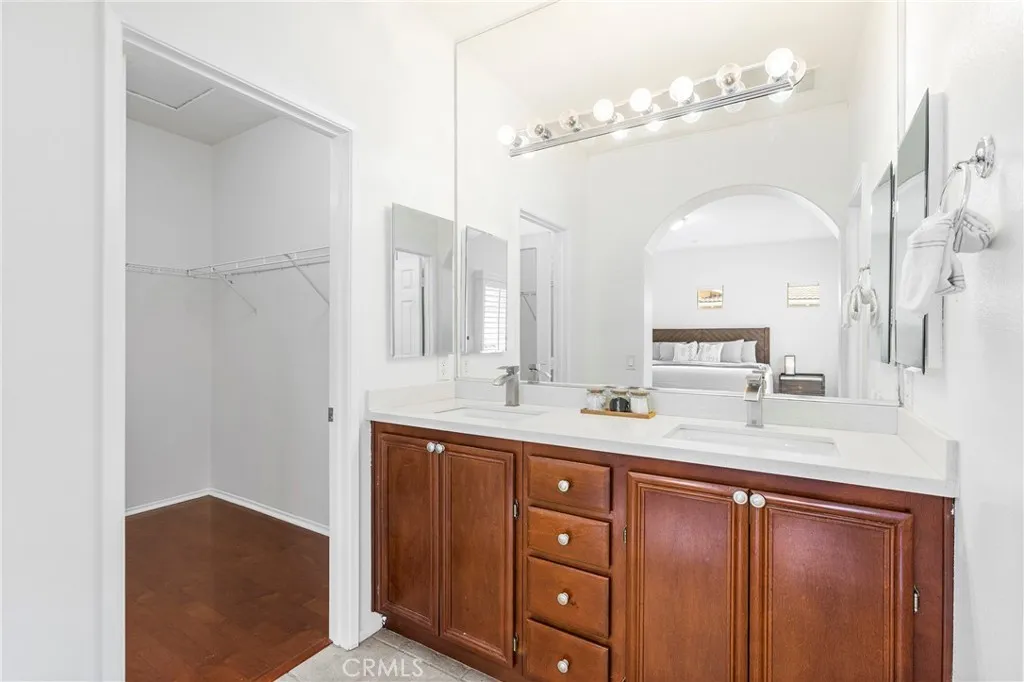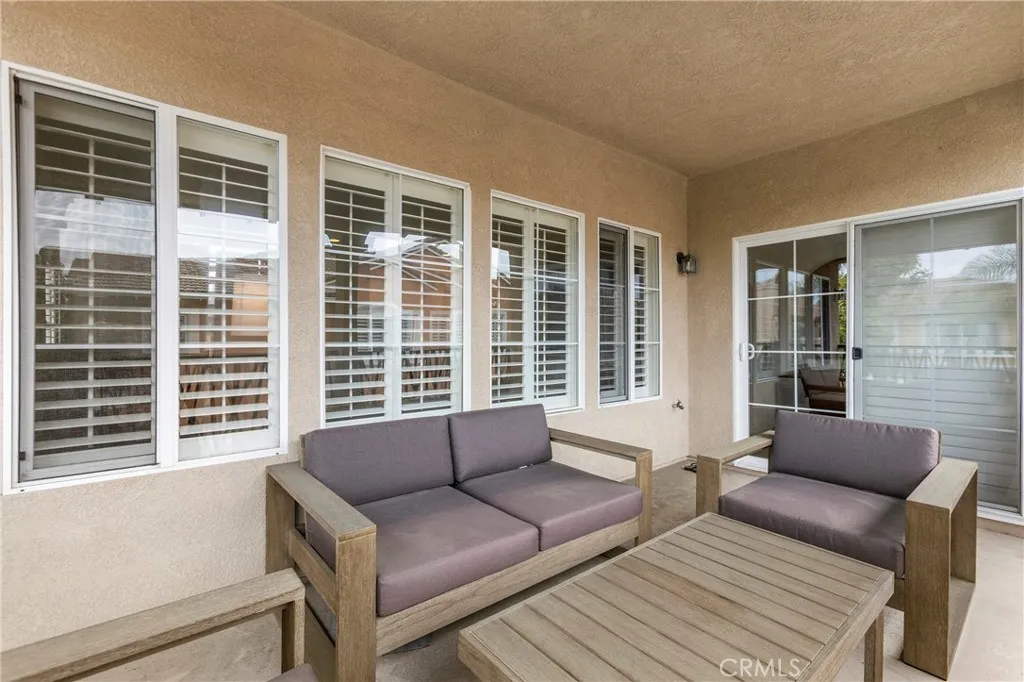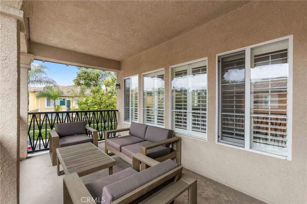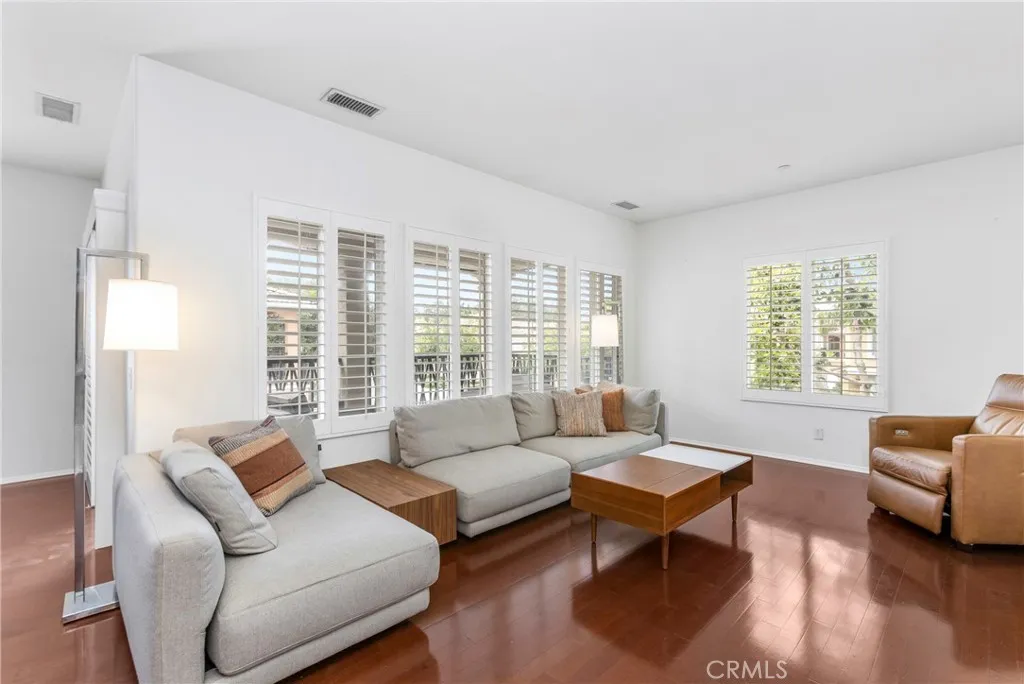 Welcome to this beautifully updated home in the desirable Montilla neighborhood of Oak Creek. This 2-bedroom, 2-bath residence offers nearly 1,400 sq.ft. of single-level living, blending comfort, peace, privacy, and the everyday convenience in one of Irvines most sought-after communities. Set in a coveted corner location, the home is filled with natural light and enjoys an open, airy feel throughout. Rich hardwood flooring flows through the main living spaces, while brand new plantation shutters add timeless style and refined functionality. The living & dining areas open to a peaceful balcony, perfect for entertaining, outdoor dining, or simply relaxing. The thoughtfully designed kitchen features granite countertops, a mosaic tile backsplash, stainless steel appliances, counter seating, and a built-in pantry for added storage. Whether hosting guests or enjoying a quiet evening in, the space is both functional and inviting. The spacious primary suite serves as a peaceful retreat, complete with a walk-in closet, dual vanities, and a beautifully tiled shower. A second private patio provides an ideal place to enjoy your morning coffee or unwind at the end of the day. The secondary bedroom provides space for guests or a home office. The attached two-car garage has direct access and plenty of space for extra storage. Residents of Montilla enjoy access to a pool and spa, as well as the broader Oak Creek amenities featuring multiple pools, parks, basketball and tennis courts, pickle ball courts, and scenic walking trails. This home is located within the award-winning Irvine Unified