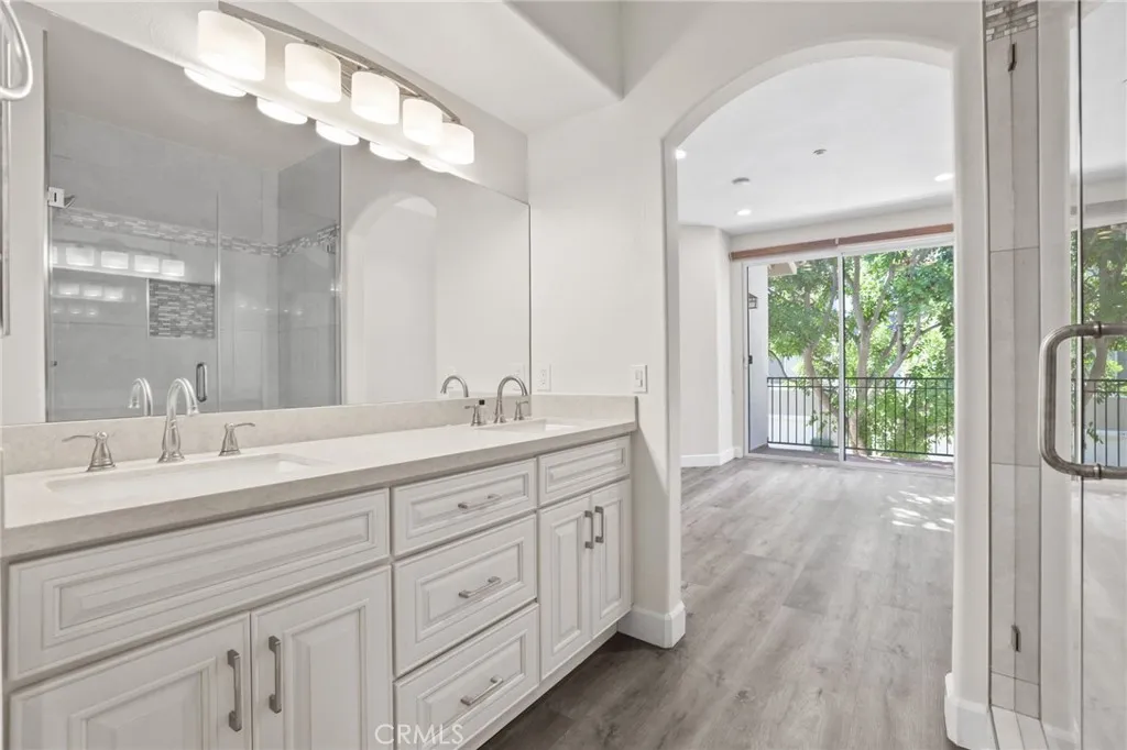 Modern 2-Bedroom, 2.5-Bath Condo in Gated Oak Creek Village, Irvine. Features a 2-car tandem garage with direct access. Stylishly upgraded with walk-in shower, quartz countertops, sleek cabinets, recessed lighting, and wood shutters. Secondary bedroom has a private bath, plus a downstairs powder room. Enjoy a private patio on the first floor plus a balcony and walk-in closet in the primary suite. Equipped with central A/C, heating, and washer/dryer hookups. Resort-style community amenities include tennis courts, gym, pools, trails, and parks. Steps from Gelsons Market, Irvine Valley College, UCI, and Irvine Spectrum.