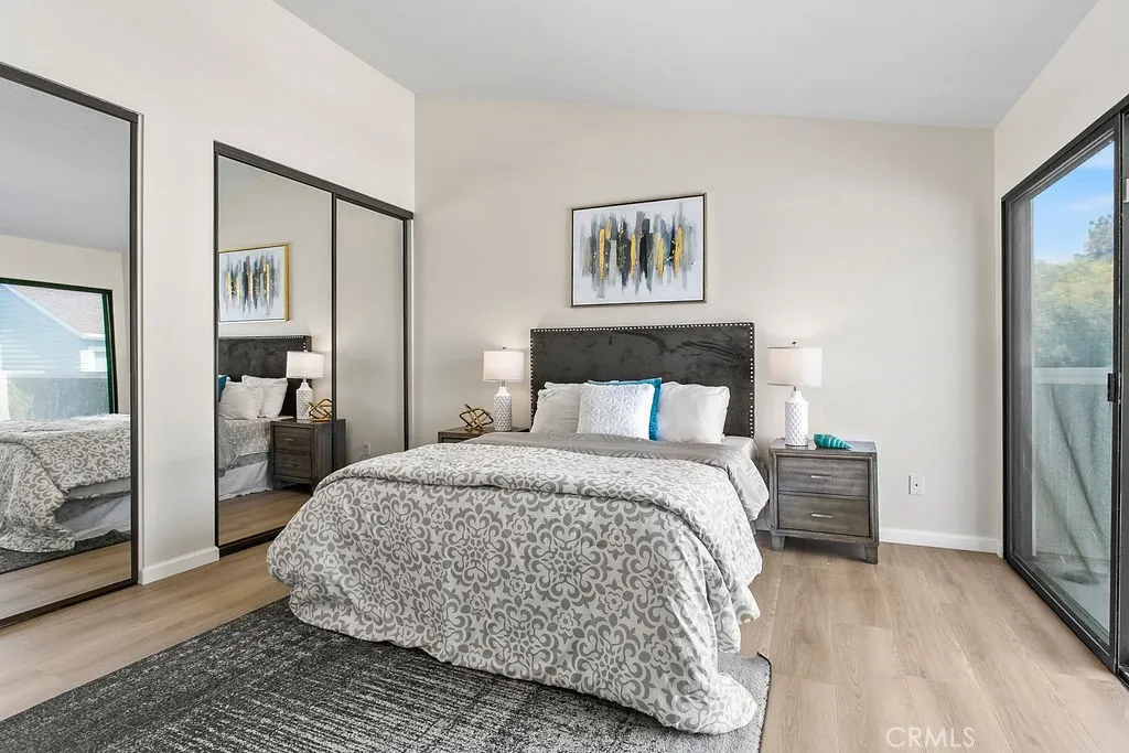 FHA APPROVED COMMUNITY. Gorgeous bright corner home with no one above or below. Top floor with beautiful vaulted ceilings with a corner lot location makes this home very bright all the time. Owner just spent over $20,000.00 in upgrading to brand new LVP flooring, painting, mirrored closet doors, new window coverings, and reglazed bathtub. Just move right in. Primary bedroom also has vaulted ceilings with a great private balcony. One car attached garage right below the home. Great balcony at the entry makes this home great for entertaining with its indoor outdoor space. Association offers pool and tennis. Indoor laundry with washer and dryer. Low taxes and no Mello roos. Walking distance to shopping and restaurants.