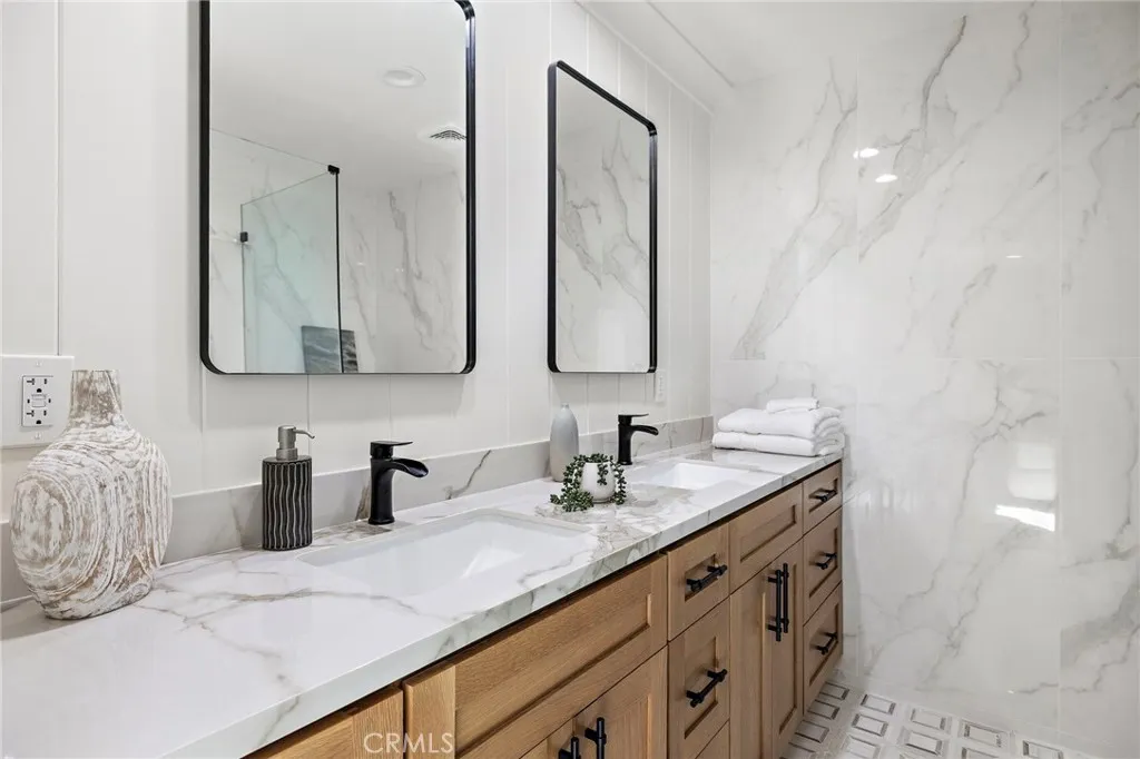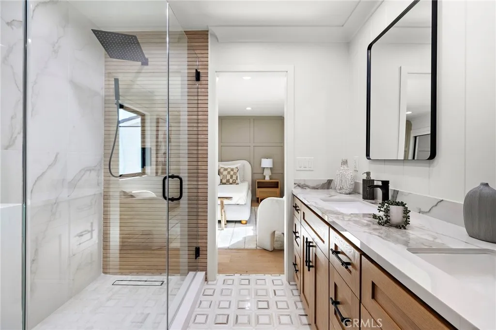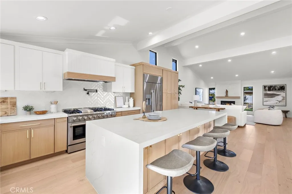 GORGEOUSLY REMODELED, NEW AND RARE SINGLE STORY. 5392 Sierra Roja is 4 Bedroom, 2 bathroom with timeless coastal elegance in highly coveted Turtle Rock Sierras. Transformed in 2025 by Pearl 39 Construction, interior square footage added with city of Irvine permits!! The backyard has also been expanded by approximately 700sf. Visitors will immediately be impacted upon entry as the designer exposes perfect flow of the recently vaulted formal living room, kitchen and dining area. The wide open entrance also includes a statement fireplace from floor to ceiling. Entertainers kitchen features carefully curated materials including custom ~10ft island cabinetry, ample bar seating, and slab countertops. Commercial grade appliances include 48 THOR range and 42 DACOR refrigerator. Professionally designed throughout with contemporary white oak cabinetry, wall lighting and elegant wall paneling. French doors lead you to a private interior courtyard for perfect for entertaining or lounging. The Primary bathroom includes dual vanity expanded and master shower. Exterior ground cover includes new irrigation, polished pea gravel, exposed aggregate concrete pours in the driveway, courtyard as well as the spacious backyard. All new Presidential roof, A/C, ducting, PEX piping, furnace, electrical panel, water heater, dual sided black retrofit/new construction window and CAT 6 wire. The home is surrounded by masterplanned parks, trails, and amenities. Irvine Unified is recognized as one of the top school districts in California and home to UC Irvine, a nationally recognized top public university