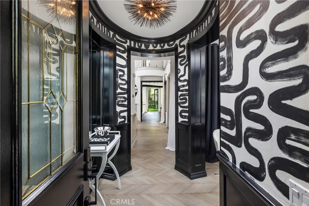 TV-Featured Magazine-Quality Luxury Home | Resort-Style Guard-Gated Northpark with Award-Winning Schools Tucked on a private cul-de-sac in Irvines prestigious triple guard-gated Northpark community, this designer residence blends modern sophistication with resort-style living. Offering four bedrooms plus an office (optional fifth), an open loft, and a first-floor guest suite, the layout is versatile and thoughtfully curated. The sunny, dramatic two-story dining room and open-concept family room are framed by expansive windows that fill the home with natural light and create a seamless sense of openness. A masterclass in luxury design, the home showcases elevated materials, architectural details, and curated statement pieces throughout. The oval wood-paneled entry sets the tone with the striking Strada light fixture by Kelly Wearstleran AD100 designer featured in Vogue, Elle Decor, Architectural Digest, Forbes, and The New York Times. The sunny, living-room-style, seamless cuisine intgre kitchen features Wearstlers Channels wallpaper, matte spray-finished solid wood cabinetry, and solid brass hardware by Londons Buster + Punch, inspired by high-performance vehicles. The 9-foot Library Tablestyle floating island with brass legs and a polished stone top anchors the space. An articulating, touchless sculptural Brizo brass faucetcelebrated for precision, artistry, and professional-grade performance and featured by Bravos Top Chef. The home office has three walls of arched windows, with mid-century modern Serge Mouillestyle fixtures and a primary fixture recognized by MoMA in New