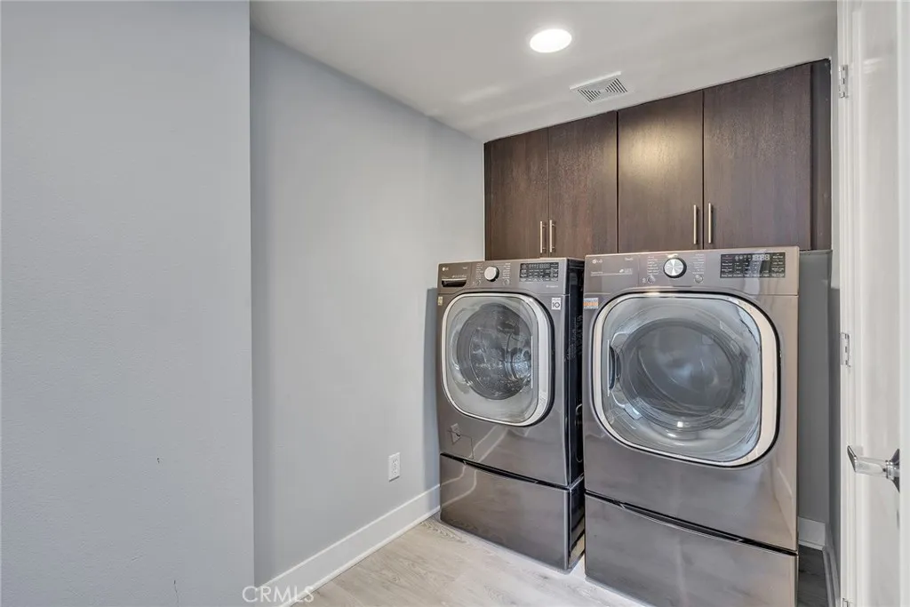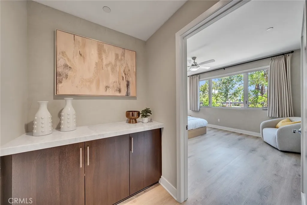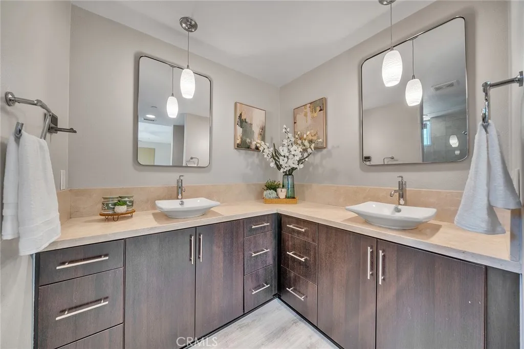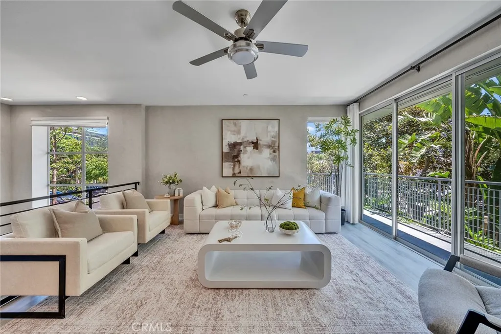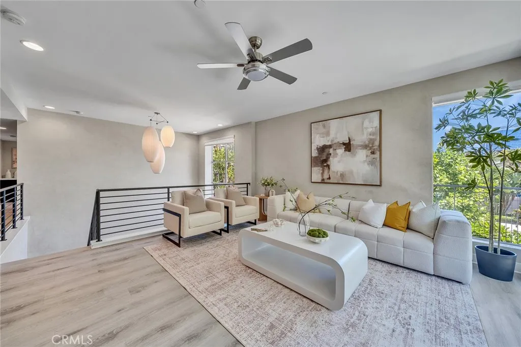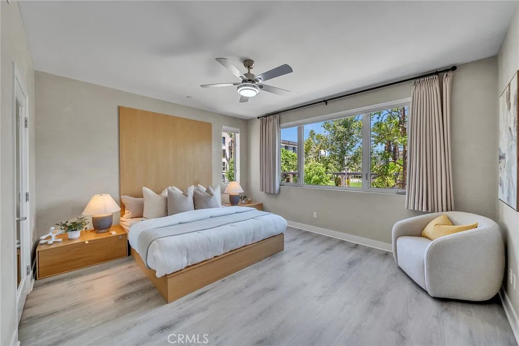 Welcome to the epitome of modern luxury living in Central Park West, Irvine. It is better than model homes.Nestled in the highly sought-after Chelsea neighborhood, this spectacular "loft-inspired" home offers a lifestyle beyond compare. Boasting 3 bedrooms and 3 full baths, this residence is a testament to spacious and contemporary living, featuring upgraded flooring throughout. As you enter the main level, you're greeted with a private space, complete with a stylish ensuite bath, making it an ideal guest bedroom or a perfect spot for a home office. The modern staircase leads you to the second-level living area, where chic design meets ultimate functionality. The abundance of natural light flooding this space is a defining feature, illuminating every corner of this beautiful home. The heart of this residence is the fabulous kitchen, which is adorned with rich cabinetry, a generous island with seating, granite countertops, and high-end Viking appliances. The large dining area seamlessly flows into the stunning main living space, where a statement fireplace and glistening sliders invite you to the private deck/patio, offering breathtaking views of the community pool and other outdoor amenities. For moments of relaxation, retreat to the expansive main bedroom suite with an exquisite ensuite bath that carries forward the elegant dark cabinetry, granite counters, and a glass shower. A spacious walk-in closet provides ample storage. A delightful second guest room and a sophisticated full bath complete the second-level living space, ensuring comfort and functionality. Immerse your
