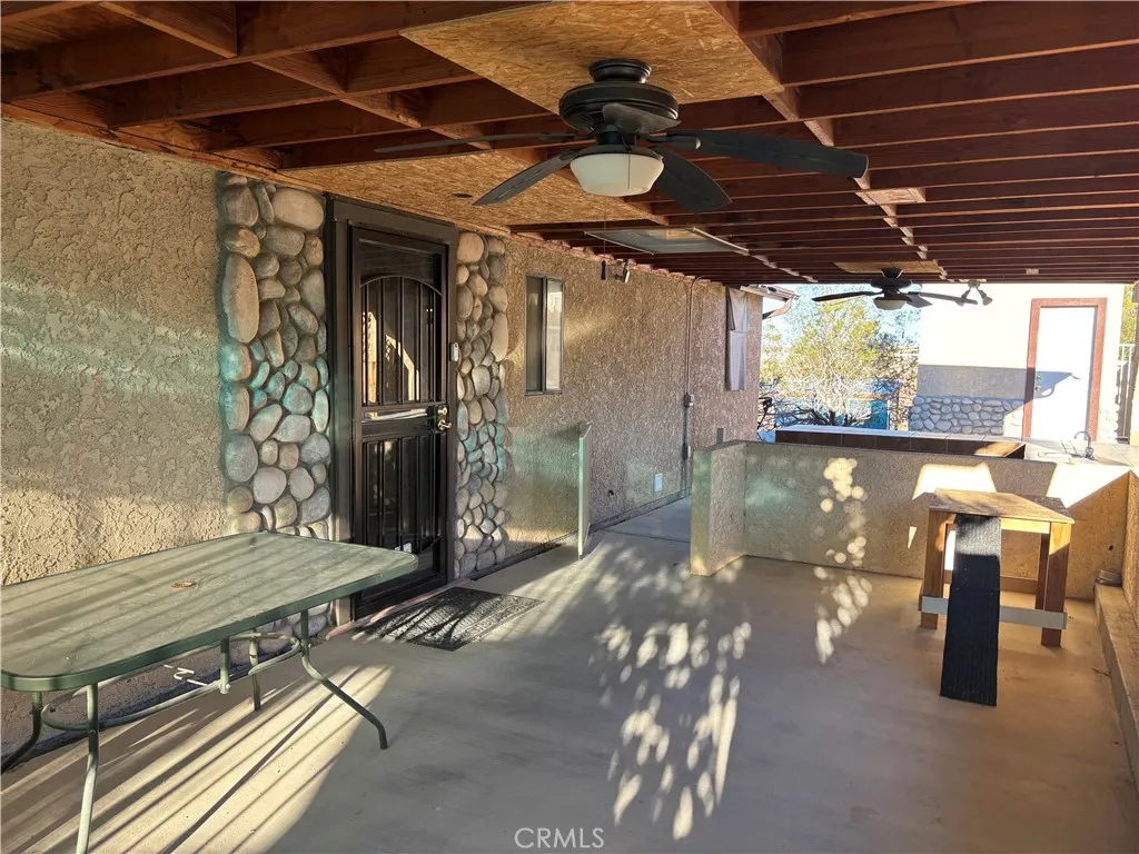 PRICED TO SELL! Come make 5975 DESERT STAR yours to enjoy. This property has everything that those moving to the area are looking for and then some.This compound has two really nice homes that are move in ready and an OVER 3500 square foot garage and workshop with a mechanics dream, 6 auto bays. Larger than some auto shops. All this is situated on two beautiful parcels totaling over seven and a half combined acres. Awesome panoramic views in all directions and just minutes down the road from the off road mecca, the Johnson Valley (OHV) Off Highway Vehicle grounds which hosts several off road events including one of the largest in the nation, The King of Hammers. The spacious main home is just under 2000 square feet of living space and was completely renovated by the current owner right down full plumbing and electrical. It features a large primary bedroom with a walk in closet, a large open kitchen with a walk in pantry. A bonus area and one of the nicest features, the roof top deck where you can enjoy expansive views and incredible night skies. There is an enclosed porch with jacuzzi and nice patios front and back for relaxing on or entertaining. The second home is 489 square feet and was custom built by the current owner. It is a 1 bedroom, 1 bath and attached garage. The garage has a 3/4 bath so could be changed into a second living space. Imagine that! Both homes have solar panel systems making heating and cooling practically free. Then there is the extraordinary detached garage/workshop. Custom built by the owner/contractor with full permits. With 6 garage bays includi