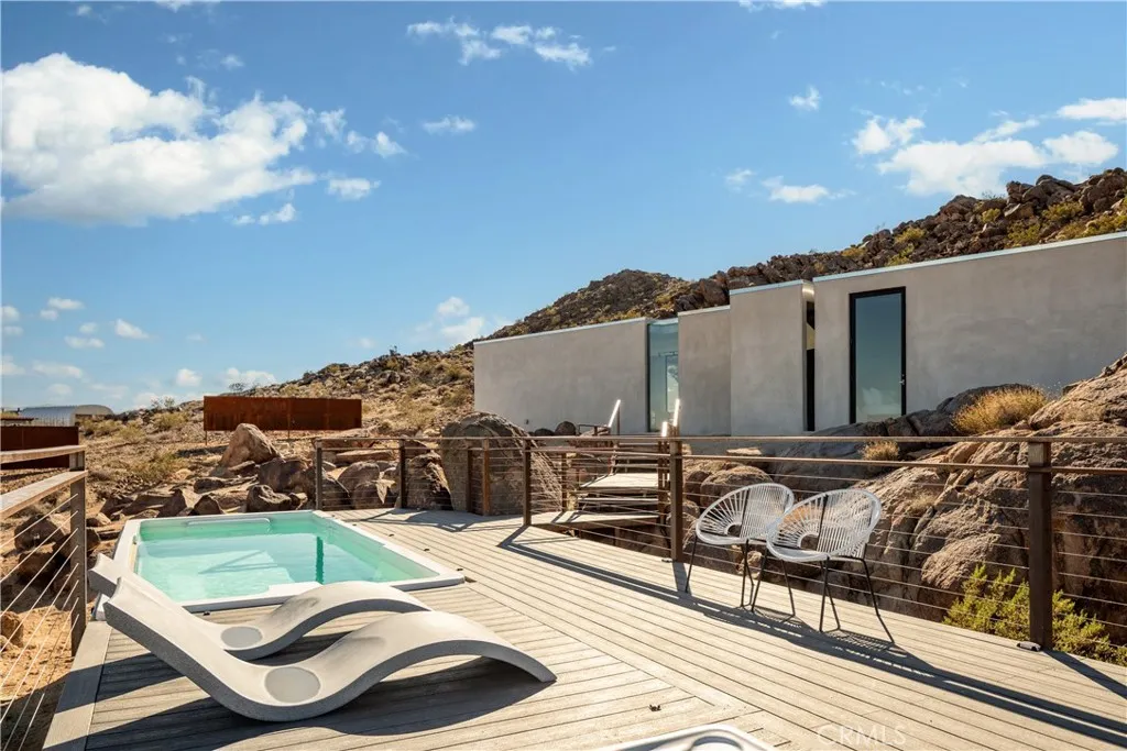 A rare architectural statement built directly into Joshua Trees iconic boulders, The Prism House lives like a private nature reserve a seamless extension of the boulders themselves. Set on 5 acres that back up to protected, boulder-strewn land, it lives like 100+, offering complete privacy and an otherworldly connection to the landscape, all just 10 minutes from town. Designed by URBARC Architects and developed by KUD Development, this one-of-a-kind retreat was completed in 2022 using the cutting-edge RSG3D concrete and foam system delivering unmatched strength, insulation, and energy efficiency. Every inch reflects design intention and craftsmanship: JennAir appliances, Eso Surfaces custom terrazzo tile, Fleetwood sliders, riftsawn oak cabinetry and doors, electric window blinds, custom LED lighting, and a built-in library with a reading nook that frames the desert light. The layout features dual primary suites plus a powder room, balancing flexibility for both personal use and high-end short-term rental income. Already a six-figure income generator, the home comes fully equipped with its branding, professional photography and video, Instagram presence, and an established luxury rental operation making it a true turnkey opportunity. Recognized on a global stage, The Prism House earned the Platinum Winner in Household Architecture at the International Architecture & Design Awards 2025 (IADA) and the Peoples Choice Award 2024 from the LOOP Design Awards. Qualifying for Airbnb Luxe (one of only a few in the desert) further elevates its prestige and earning potential. A rar