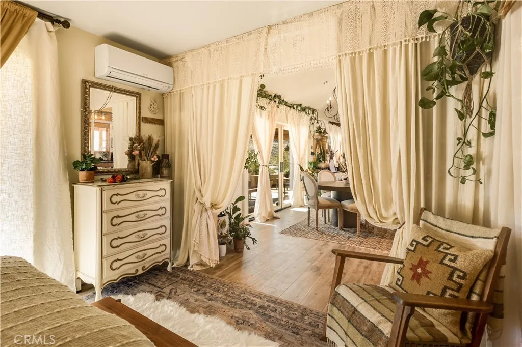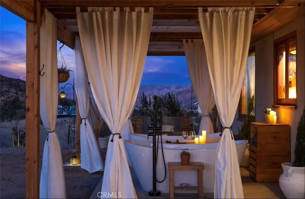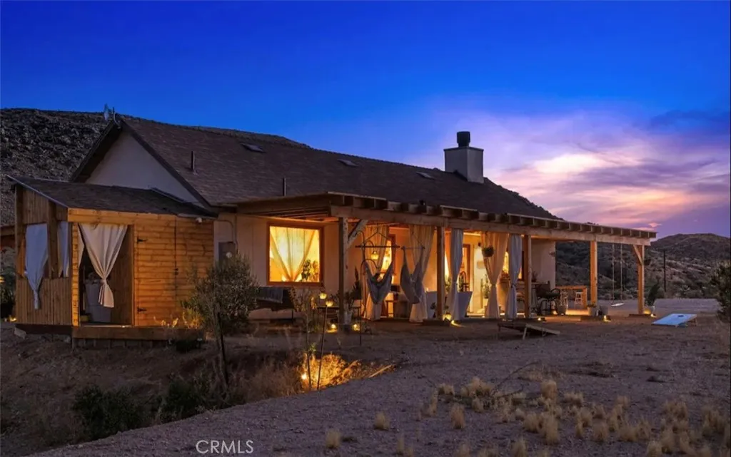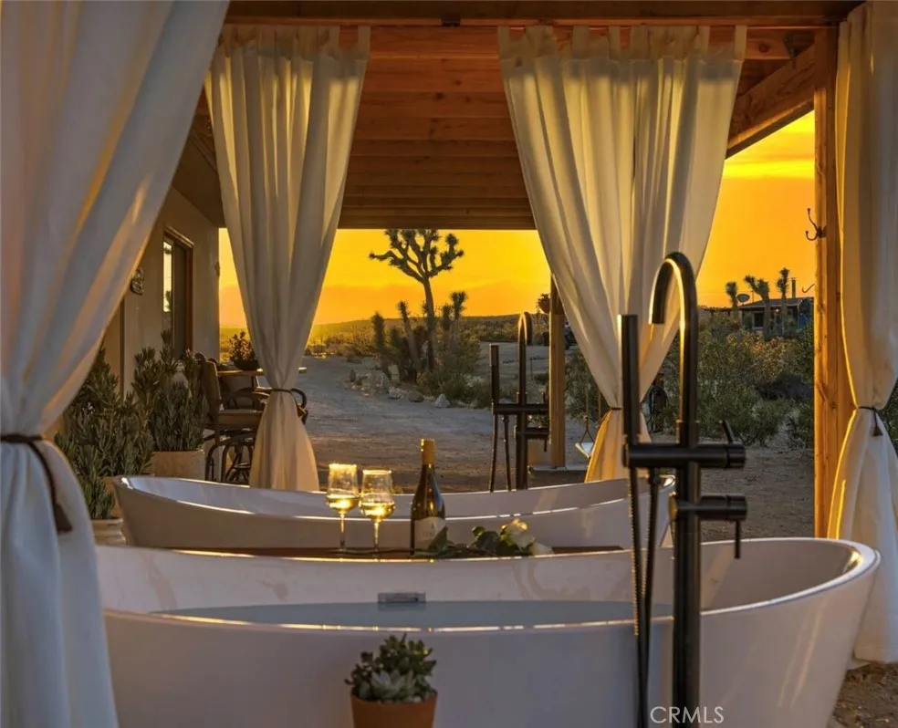 The Seven Sisters and The Cabin at Atlas Ranch create a rare 10-acre, three-parcel high-desert compound with true 360 views of the Bartlett Mountains on one side and the Joshua Tree National Park ridgeline on the other. Located in the highly sought-after Windy Gap area, where opportunities to purchase are limited, this property offers a compelling combination of lot size, location, privacy, and proximity. Just approx. 5 minutes to downtown and about 12 minutes to the park entrance, this retreat delivers both seclusion and convenience. Included in the sale are three separate lots totaling approx. 10 acres: The Seven Sisters on an approx. 5-acre parcel (remodeled 1BD/1BA open-concept, loft-style home), The Cabin at Atlas Ranch on an approx. 2.5-acre parcel (newly renovated 1954 1BD/1BA with vintage charm), plus an additional approx. 2.5-acre vacant parcel for future potential (buyer to verify zoning, utilities, and buildability). The two residences sit roughly 300 feet apart, offering separation, privacy, and expansive desert views. Both homes have been completely remodeled with beautiful tile and high-end finishes, and feature seamless indoor-outdoor flow, mini-split heating and cooling, washer/dryer in both homes, and an on-site EV charging station. Enjoy multiple patios and lounge areas, a firepit, and outdoor soaking tubs for unforgettable desert nights. The Seven Sisters also offers a chef-friendly kitchen with a propane range, a cozy fireplace, and a large indoor soaking tub positioned for mountain and star views. Currently operated as part-time short-term rentals, this