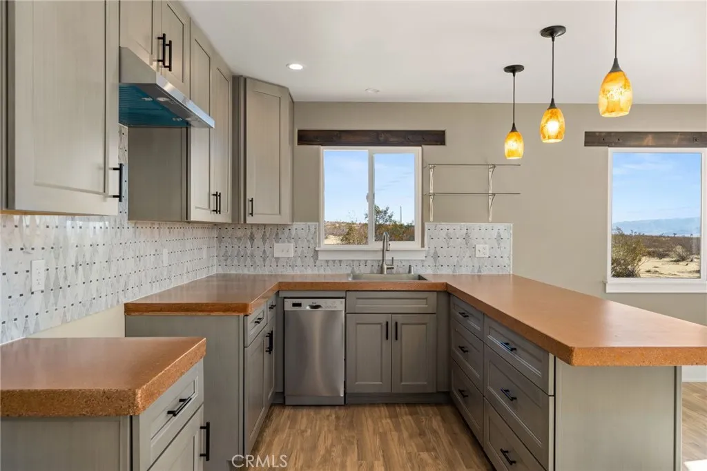 NEW BUILD HOME!!! This home was recently finished as a custom-built desert oasis! Located right outside the main park entrance for Joshua Tree National Park. Convenient location for visiting the National Park while also experiencing a secluded, private desert landscape. This home features STUNNING VIEWS in every direction and the most amazing sunsets on earth, the back porch is positioned perfectly to enjoy these views. You will also find many custom features, like the concrete countertops in the kitchen and beautiful live edge wood countertops and accents in the bathrooms. The property sits on 2.7 acres of flat usable land to plan the most amazing entertainment space, with potential for pool, firepit, games, horses, ATV's etc... This home is perfectly set up for Air BnB for Joshua Tree National Park, the #2 rated national park in the USA with 3.25 million visitors per year, or can be enjoyed as a second home or primary residence. Best access to the property is from Wesley Rd off Aberdeen Dr.