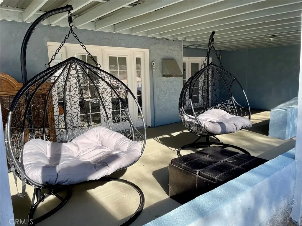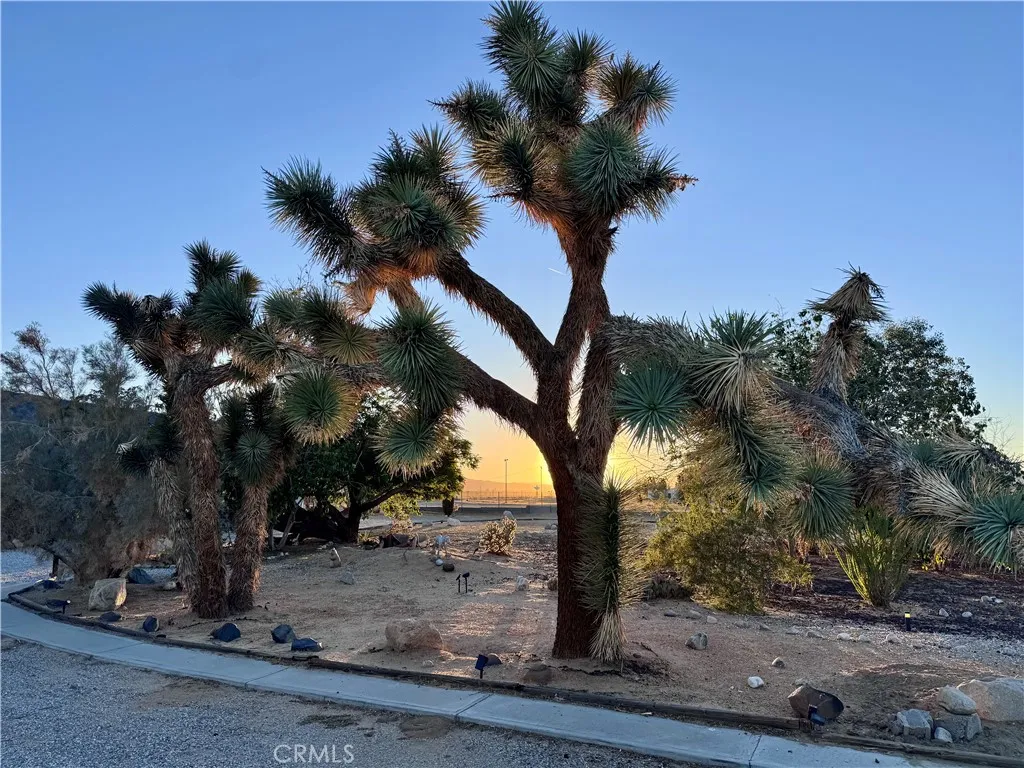 Exceptional opportunity to own a turnkey, fully remodeled single-family home on a 2.5-acre lot in rural Joshua Tree, with minimum 2.5-acre parcels for privacy. Just a few neighbors in the neighborhood and a low-profile solar farm quiet, unobstructed views and 24/7 security. Centrally located in Joshua Tree Valley with surrounding mountains, offering 360 panoramic desert and mountain views, sunrises, and sunsets. Valley-center position avoids western shadows for full sunset views. 6 miles from town center, balancing seclusion for stargazing (minimal light pollution) with amenity access; distant town lights visible. This 3-bed, 2-bath single-level home features 160 sq ft finished loft accessible from one bedroom. Upgrades: extra-thick walls for insulation, double-pane windows, new north roof, 34-panel 13.6 kW solar system, and Generac generator. Interior: new baths, kitchen, tile floors, paint, electrical by prominent designer. Family room has wood-burning fireplace with glass door and fan. Furniture available separately. Highlights: loft/master windows for stargazing from bed. Oversized finished garage (drywalled/painted) for storage/workshop/entertainment, plus carport and covered driveway. Fully fenced, divided into sections: front 1.25-acre with half-circle gravel driveway, dual gates, mature landscaping (50-70-yr Joshua trees, cacti, Mesquite for shade/wildlife). Rear: 30x15 ft covered patio, above-ground pool (new filter/pump/liner), hot tub, built-in bar on 20x20 ft slab, utility shed. Rear 1.25-acre RV lot graded in three levels with septic, water, 100A electrical, pl