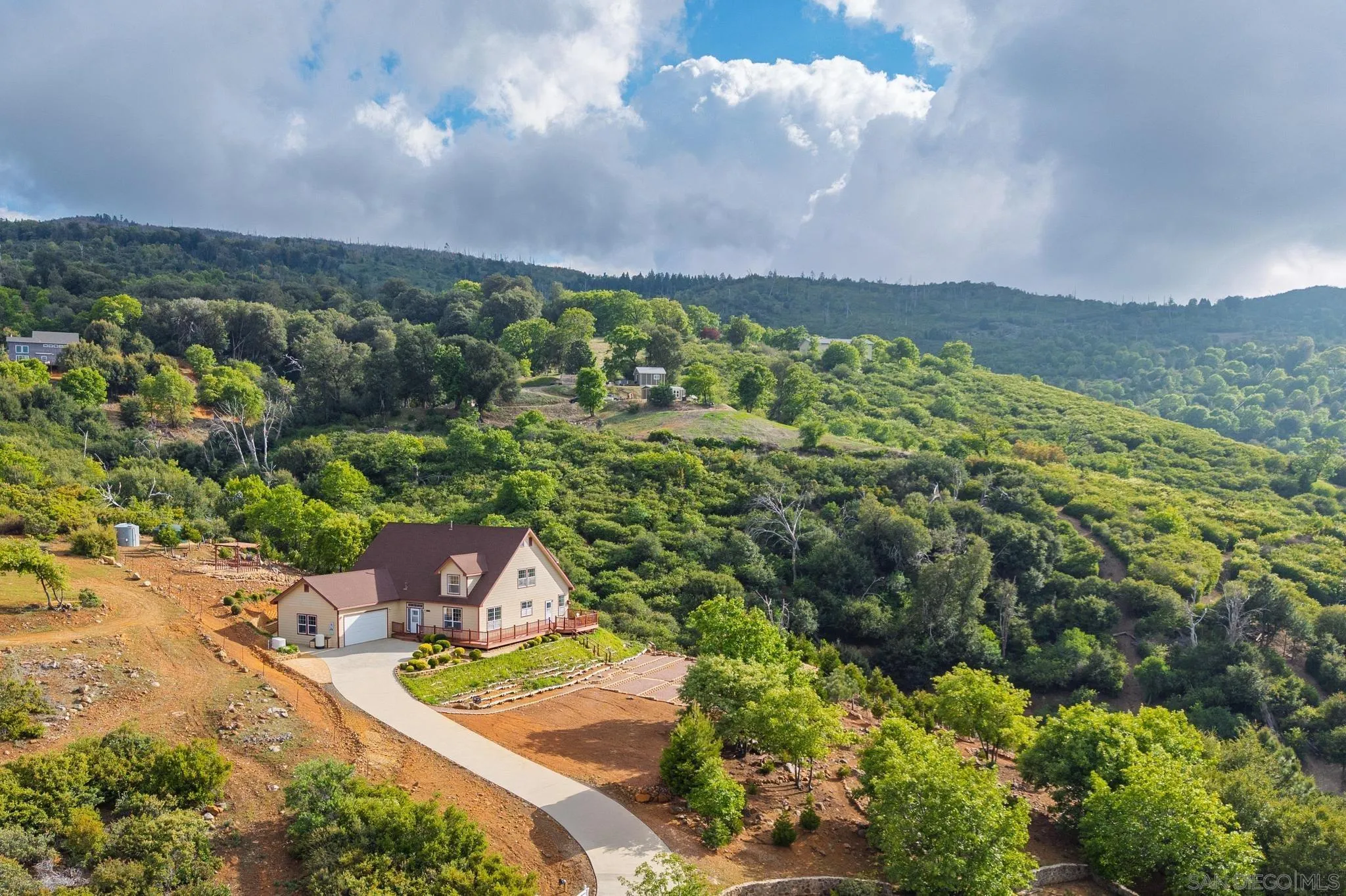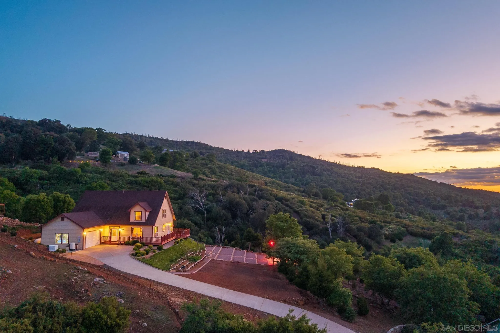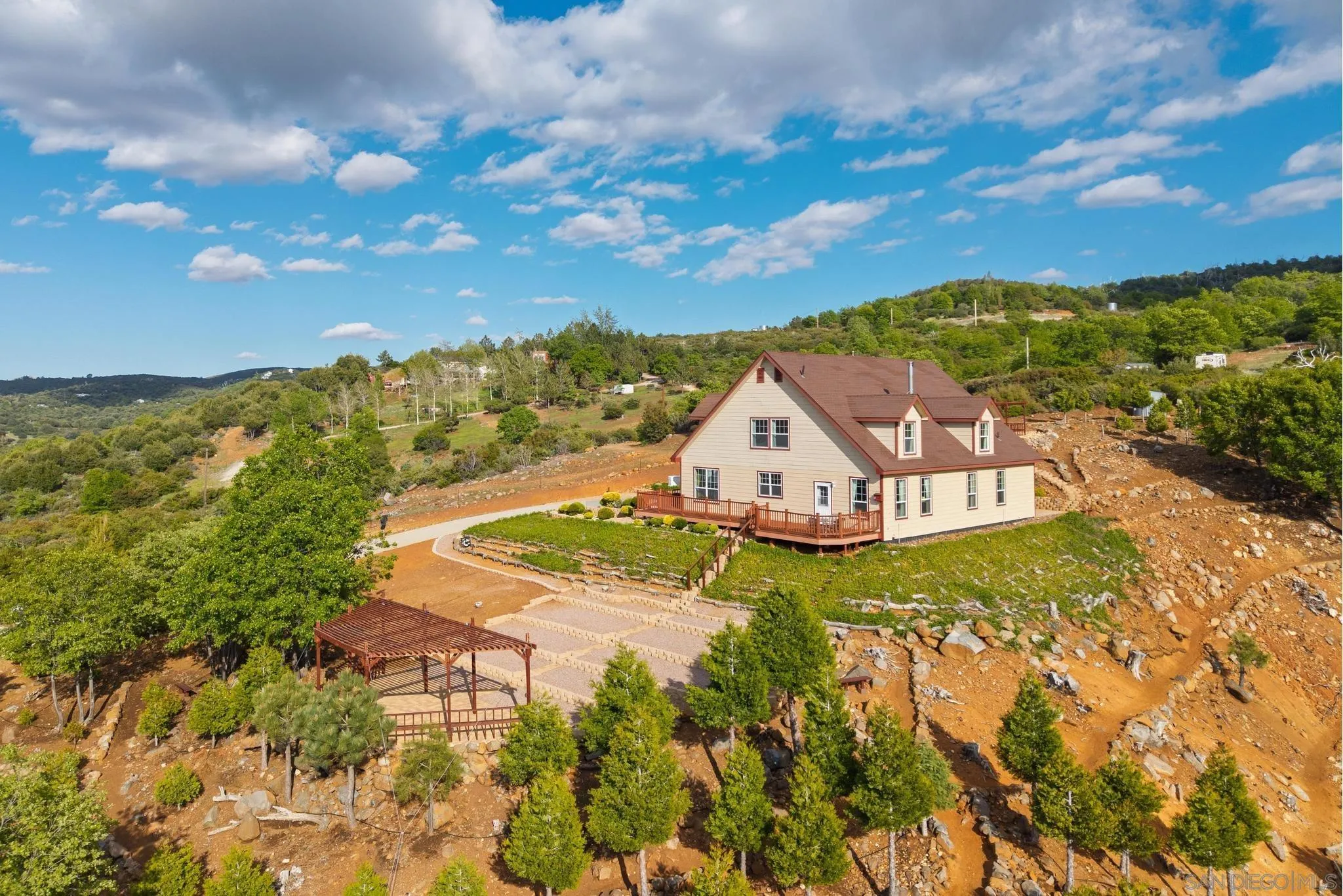 Beautifully maintained 3-bedroom, 2-bathroom home with 3,831 sq. ft. of thoughtfully designed living space and stunning views on 5 ACRES in the picturesque town of Julian, CA. Built in 2009, this CUSTOM HOME boasts an open floor plan with abundant natural light and expansive views. The main living area includes a large living room with wood burning stove, a well appointed kitchen with plenty of storage, granite countertops, walk-in pantry and a separate dining space. The primary suite offers a walk-in closet and en-suite bathroom. Two additional bedrooms provide ample space for family, guests, or an office. Upstairs, the 1,653 sq. ft. bonus room offers flexible space for a home office, gym, studio, in-law suite or additional living area. Enjoy spectacular sunsets from the deck or stroll through the landscaped garden paths that wind through every acre of your private property. Outdoor features include a deck, tiered landscaping, and a custom-built pergola designed for entertaining. The pergola is equipped with 230-volt power and a dedicated 150-amp panel, and is complemented by terraced seating—ideal for gatherings, events, or outdoor performances. The property has been meticulously maintained and cleared for fire protection and features fire-resistant materials such as cement hardieboard siding and closed eaves that meet the latest safety requirements. In addition, it has a Genrac whole house generator. The home is in excellent condition with no projects needed—just unpack and enjoy!
