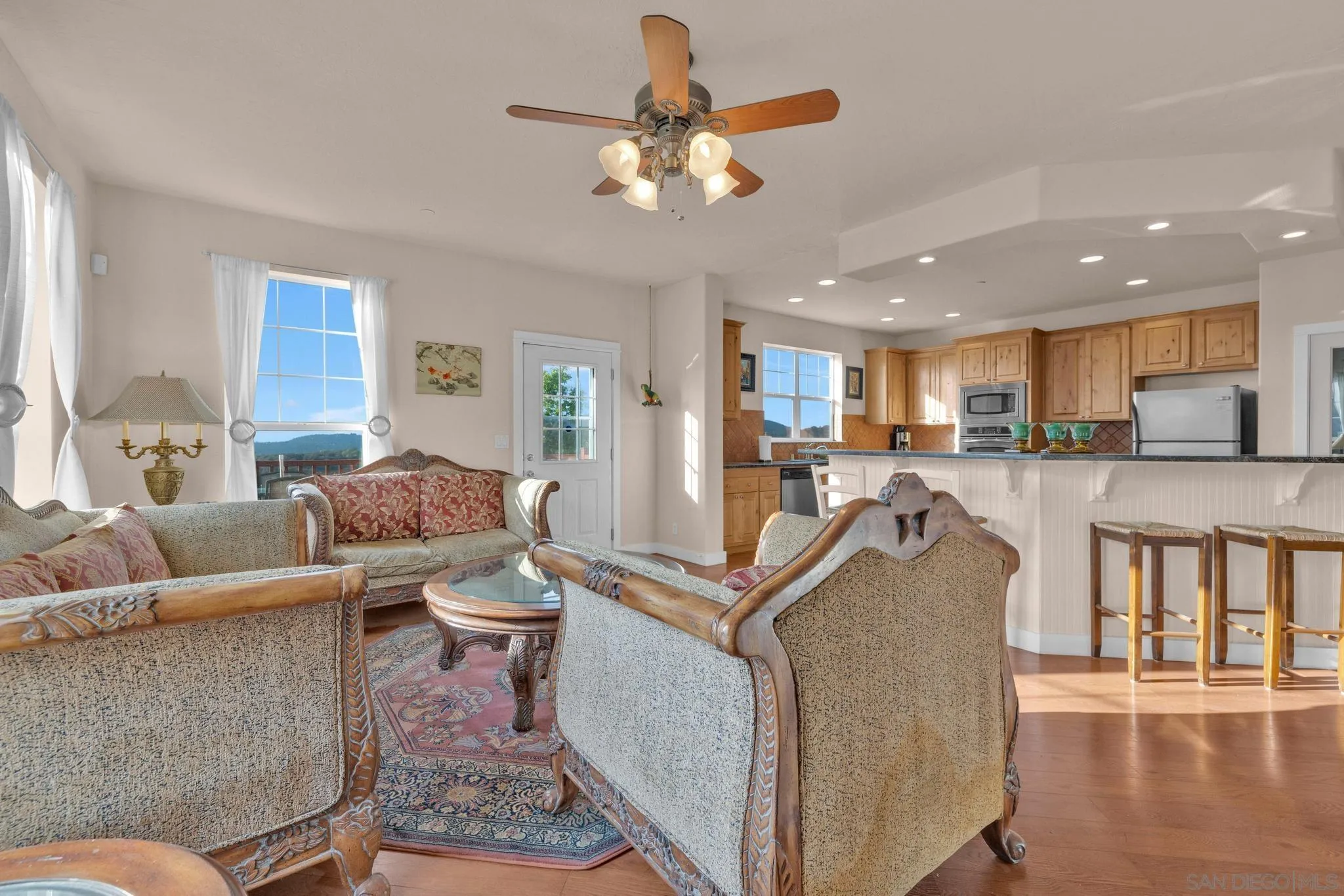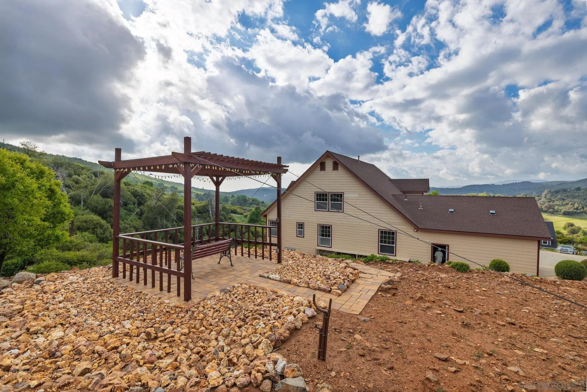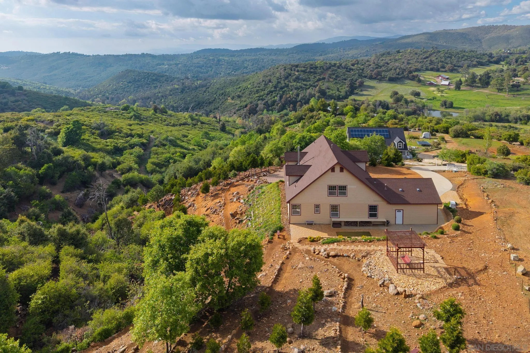 Beautifully maintained 3-bedroom, 2-bathroom home with 3,831 sq. ft. of thoughtfully designed living space and stunning views on 5 ACRES in the picturesque town of Julian, CA. Built in 2009, this CUSTOM HOME boasts an open floor plan with abundant natural light and expansive views. The main living area includes a large living room with wood burning stove, a well appointed kitchen with plenty of storage, granite countertops, walk-in pantry and a separate dining space. The primary suite offers a walk-in closet and en-suite bathroom. Two additional bedrooms provide ample space for family, guests, or an office. Upstairs, the 1,653 sq. ft. bonus room offers flexible space for a home office, gym, studio, in-law suite or additional living area. Enjoy spectacular sunsets from the deck or stroll through the landscaped garden paths that wind through every acre of your private property. Outdoor features include a deck, tiered landscaping, and a custom-built pergola designed for entertaining. The pergola is equipped with 230-volt power and a dedicated 150-amp panel, and is complemented by terraced seating—ideal for gatherings, events, or outdoor performances. The property has been meticulously maintained and cleared for fire protection and features fire-resistant materials such as cement hardieboard siding and closed eaves that meet the latest safety requirements. In addition, it has a Genrac whole house generator. The home is in excellent condition with no projects needed—just unpack and enjoy!