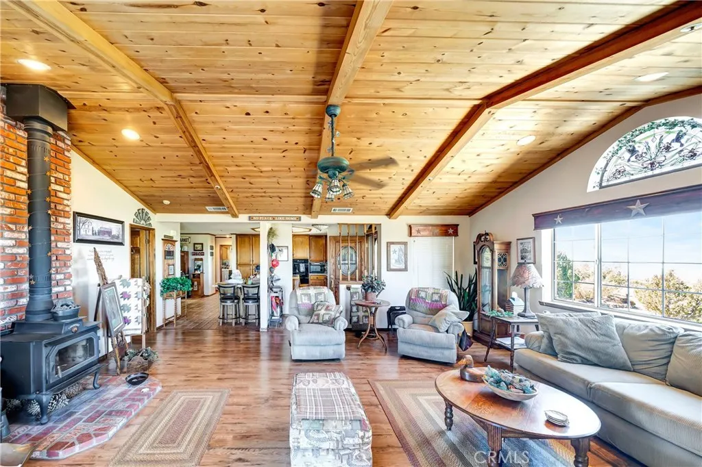 Grand Ranch Two-Story Estate in the Scenic Juniper Hills Community. This Warm & Inviting Estate Nestled in the Picturesque Juniper Hills Sitting on 2.50 Acres of Serene, Usable Land with Breathtaking Panoramic Views of the Mountains. This Gorgeous Home Offers Four Bedrooms & Three Bathrooms Featuring 2,588 sq. ft. of Thoughtfully Designed Living Space. This Custom Two-Story Home is Perfect for those Seeking Privacy, Space, and Versatility. Step Into a Home that Exudes Rustic Ranch Charm, with Classic Country-Style Architecture & Rich Wood Features Throughout, Including Exposed Beams, Wood-Paneled Accents, & Warm Finishes that Give the Home a Cozy, Timeless Feel. The Spacious Living Areas are Anchored by a Charming Potbelly Stove, Perfect for Gatherings on Cool Evenings. The Chef's Kitchen Featuring Ample Cabinet Space, a Large Center Island with a Built-In Range & a Breakfast Bar. The Open-Concept Dining Room Flows Seamlessly into the Patio Deck Complete with a Stylish Atmosphere for Effortless Gatherings. Cozy up During Winter Nights by a Stunning Rock Fireplace in the Luxurious Primary Suite. The Primary Suite Boasts a Large Walk-In Closet & an En-Suite Bathroom with a Large Custom-Tiled Shower & a Soaking Tub that Looks Out onto a Peaceful Patio Oasis. The Guest Bathrooms are Tastefully Decorated with a Ranch-Inspired Feel, Featuring Rustic Finishes & Natural Tones that Perfectly Complement the Home's Country Aesthetic. Additional Features Include a Private Well for Water Independence, & Two Oversized Covered RV Garages, One of Which Includes a Fully Covered Carport Prov