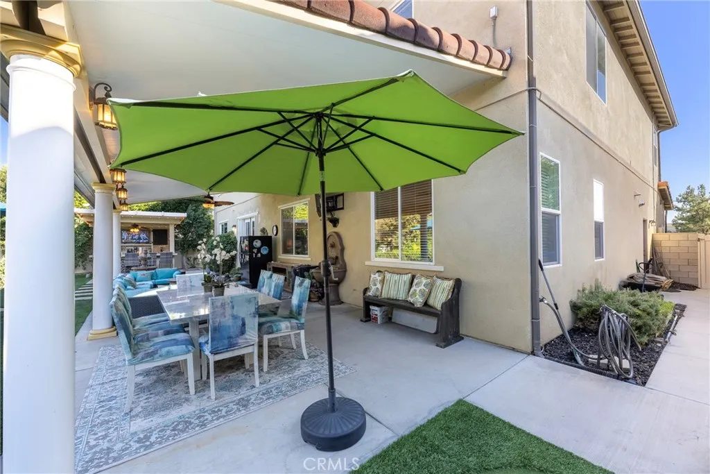 Once in a great while the perfect family and entertaining home appears. Just in time for the holidays this special William Lyon home known as The Retreat has arrived. The Coventry still remains one of the most popular and functional floorplans in all of Rancho Del Sol. You are greeted by leaded doors at the front that are also included as you enter a literal backyard paradise. In addition to the 4 large bedrooms this beauty offers a den (was optional 5th bedroom) as well as a generous bonus room perched upstairs. The interior of the home was upgraded to the nines. Polished porcelain floors in the kitchen, bath and family room highlight the epitome of luxury living. In addition to the gorgeous chandeliers in the kitchen, both dining areas as well as the office area the primary suite, upstairs loft and family room come with fan lighting. The oversized island highlights a kitchen built for a chef. Accompanied by polished granite and stainless steel appliances there is never a lack of storage when you consider the walk in as well as butlers pantry. The garage has custom floor to ceiling cabinetry and the perfect place for hard working car buffs. Saving the best for last when you enter the backyard you may never want to leave. Beginning with the oversized California Room the owners spared no expense. The entertainer area is complete with outdoor BBQ, 2 refrigerators, a kegerator, bar seating, tv and a firepit. The entertainment through the yard is run by Bluetooth controls leaving you only to enjoy. The 4 fountains lend to the ideal oasis with lighting throughout and lush, matur
