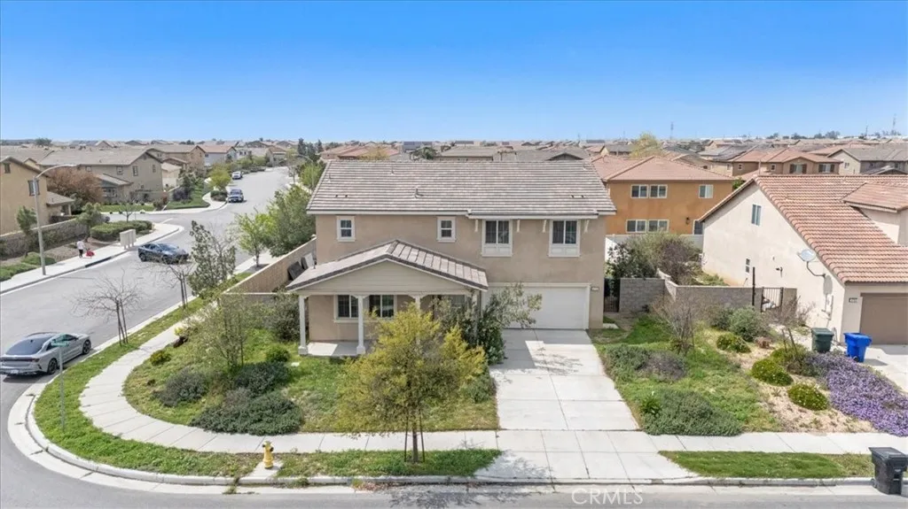 PRICE ADJUSTMENT!!! This property is a rare find at this price. It is located at a newly development community. This corner lot features 7,841 square feet. With 5 bedrooms and 3.5 baths, this 2,915 square foot home has ample room for family and friends. It has an entertaining oriented and open layout with tile flooring throughout the first floor. . When you step in the house, a one bed/one bath, and a guest bathroom is to your left. Going through a walkway, you are entering into an open and well lit familyroom and kitchen. Large windows and sliding door brings in daylight from the backyard into the house. Kitchen has granite countertops and a large island. Upstairs, you will find 3 spacious bedrooms, a good size master bedroom, bath and a laundry room. A tankless water heater supplies endless hot water. The interior was recently painted. The backyard is large enough for your kids and pets to play in. The last but not the least, it is just minutes from the 60,10 and 15 freeways and shopping areas in Eastvale.
