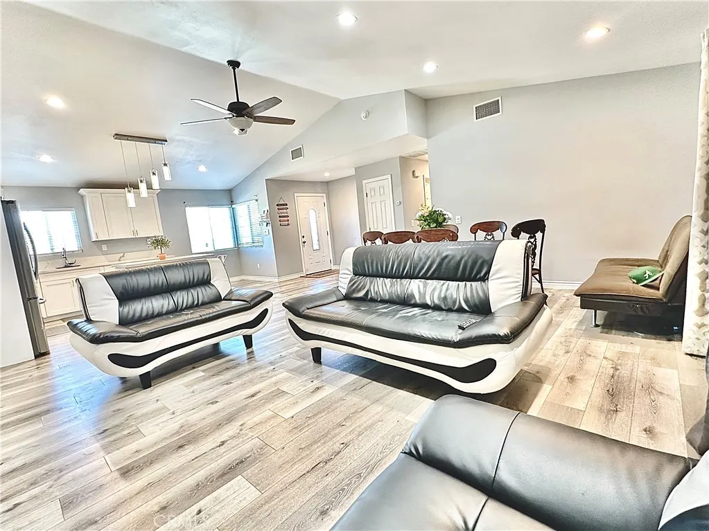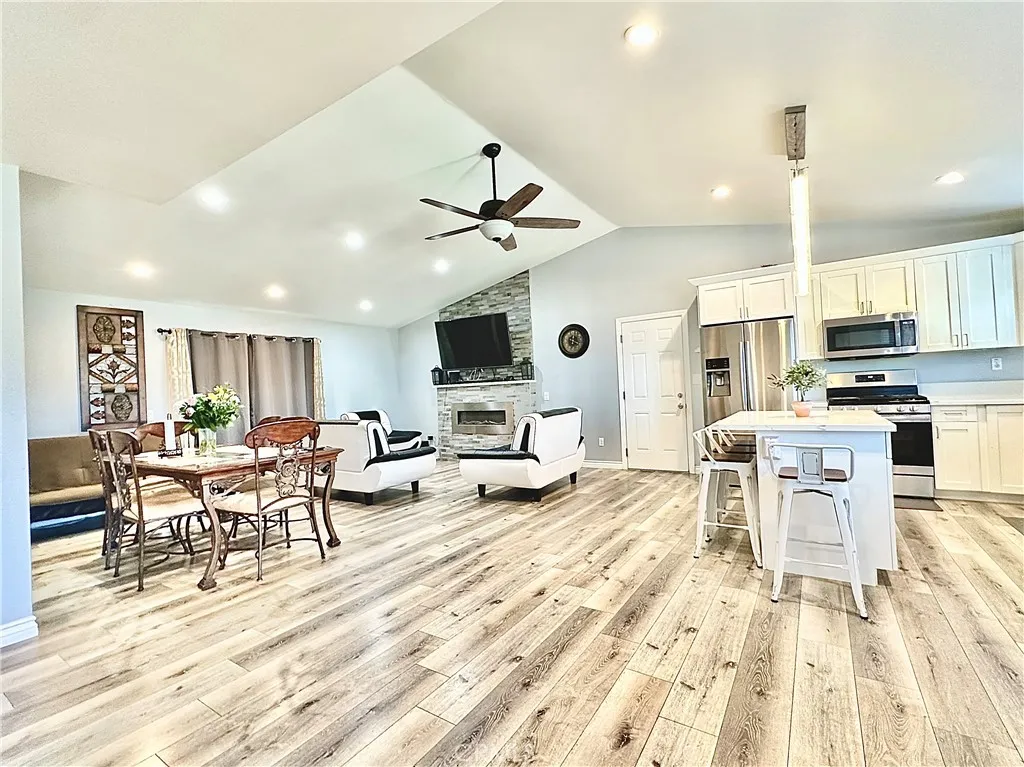 Discover your dream home in Riverside! This stunning, remodeled single-story home offers modern comfort and style in a highly desirable neighborhood. Step into the inviting living room, complete with recessed lighting and a sleek, contemporary fireplace. The adjacent dining area features French doors that open to the backyard, seamlessly blending indoor and outdoor living. The chefs kitchen is a showstopper, boasting crisp white cabinetry, stainless steel appliances, elegant modern lighting, a center island, and Quartz countertops. Enjoy three generously sized bedrooms, each equipped with updated lighting and wood blinds throughout. The attached two-car garage provides convenient direct access. Outside, youll find a welcoming front porch and a spacious backyard patio, perfect for relaxing or entertaining. With its expansive lot, upslope driveway, and breathtaking views of city lights and hills, youll love watching the sunrise and sunset. This move-in-ready home is ideally located near shopping, dining, top-rated schools, parks, hiking trails, major freeways, and the Oak Quarry Golf Club. Dont miss this exceptional opportunity!