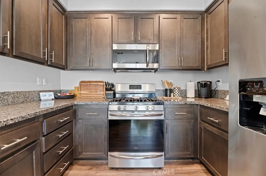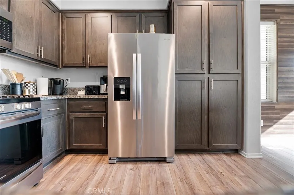 PRICE IMPROVEMENT! Motivated sellers just adjusted the price making this beautiful home an even better value. Dont miss your chance! Welcome to Granite Ridge, a sought-after gated community in Jurupa Valley! This 2018-built 4 bedroom, 2.5 bath detached house offers the perfect blend of modern design and low-maintenance living. Step inside to an inviting open floor plan with luxury vinyl plank flooring, custom paint, and abundant natural light. The chefs kitchen boasts shaker-style cabinets, granite countertops, stainless steel appliances, water filtration system, and convenient built-in trash/recycling bins. Upstairs youll find all 4 bedrooms, a spacious laundry room, and a primary suite with walk-in closet, dual vanities, soaking tub, and separate shower. Additional features include tankless water heater, central HVAC, and attached 2-car garage with an EV car charging option. Outside, enjoy a premium courtyard driveway and low-maintenance yard with vinyl fencing and concrete patio. Energy saving solar panels. The Granite Ridge community offers private parks, controlled access, and landscaped common areas, all with a low HOA. Conveniently located near shopping, dining, schools, and freeway access. Dont miss this turnkey home that truly has it all!