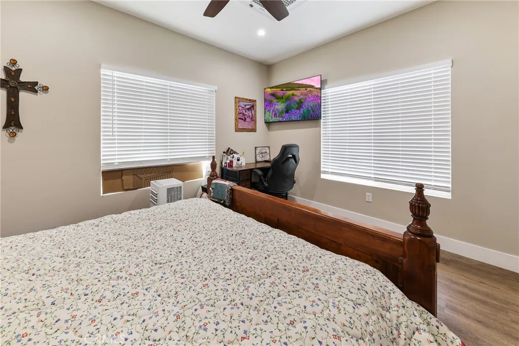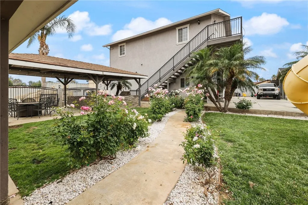 Unique Multi-Unit Property with Pool, Oversized Shop, and Income Potential! Welcome to 8963 Bold Ruler Lane in Jurupa Valley a one-of-a-kind property offering exceptional space, flexibility, and rental income opportunities! The main home, originally built in 1975, features 5 bedrooms and 2 bathrooms, with tasteful upgrades including crown molding and plantation shutters in the living room and bedrooms. The current owner, a licensed contractor who purchased the home in 2004, converted the garage into 2 additional bedrooms and a laundry room, with plans available to transform the space into a Jr. ADU. Step outside to your private backyard retreat complete with a sparkling pool, a covered patio with built-in BBQ and oven, and plenty of space to entertain family and friends year-round. At the rear of the property sits a massive oversized shop/garage totaling approx. 1,600 sq ft, with soaring 14-ft ceilings, two 12x12 automatic garage doors, a bath, Office space, and 400 sq ft of additional second-story storage. Whether youre a contractor, car collector, small-business owner, or need serious workspace, this structure delivers. Above the shop are two additional units: Unit 1: 2 beds, 1 bath, approx. 1,000 sq ft, walk-in pantry, and in-unit laundry Unit 2: 1 bed, 1 bath, approx. 600 sq ft with its own laundry area Toward the back of the lot, youll also find: Unit 3: Detached 2 bed, 1 bath, approx. 867 sq ft with laundry area RV parking area with full hookups ideal for guests or added convenience This property is perfect for large or multigenerational families looking for ex