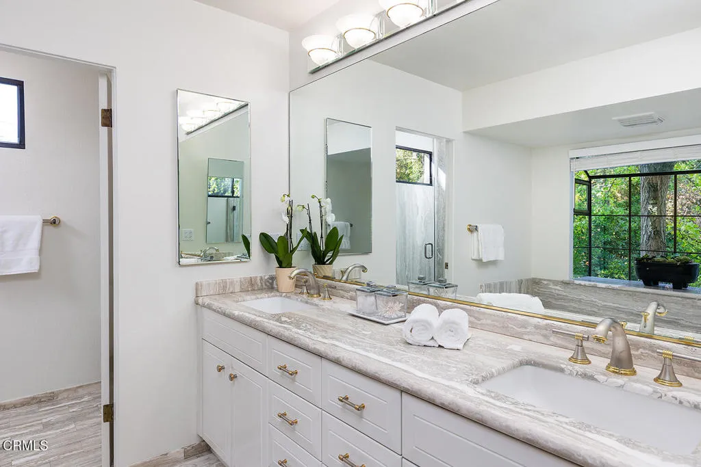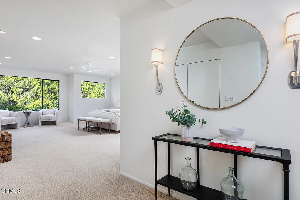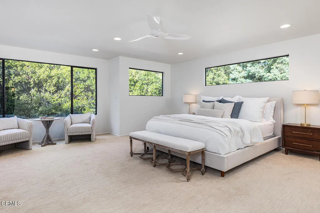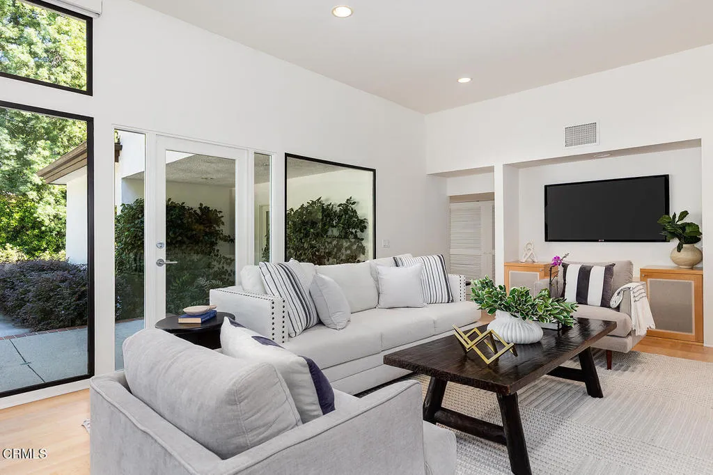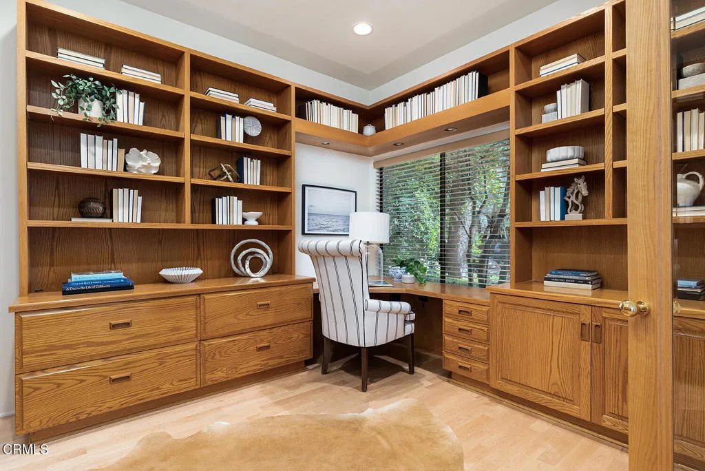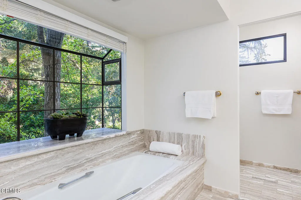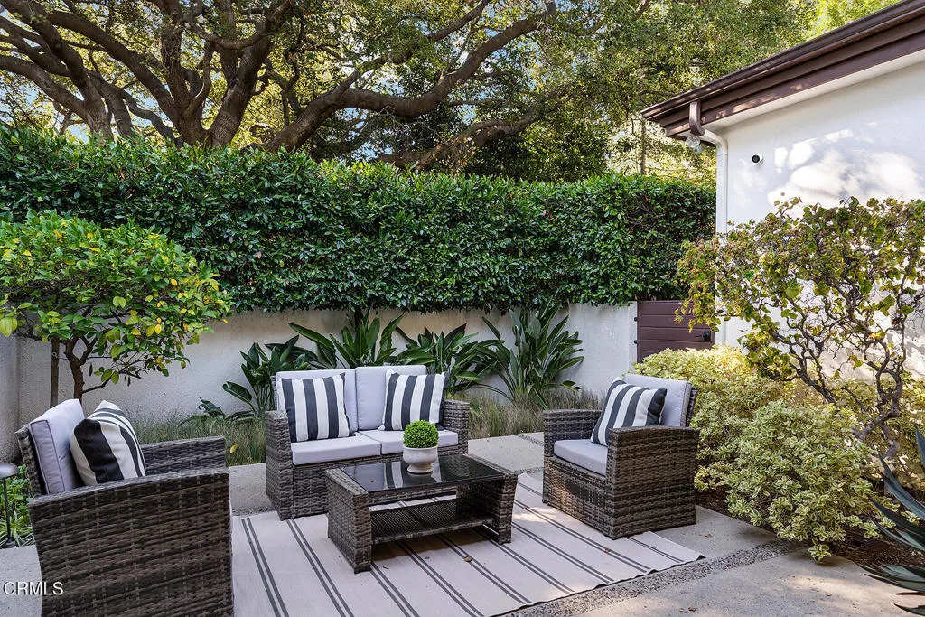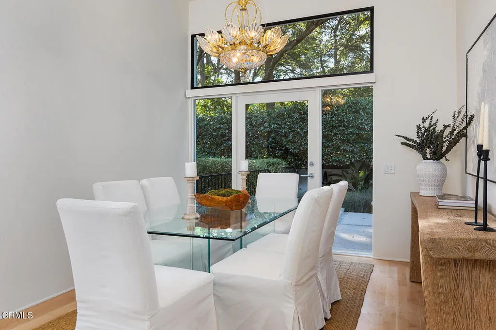 Framed by majestic deodar trees, this sculptural contemporary home blends architecturalsophistication and warm California modern living. Its striking frontage and manicured landscape offer instant curb appeal, while expansive glass walls fill the interior w/ natural light, blurring the line between indoors and out. Thoughtfully designed to frame tranquil garden views, each space embraces its lush surroundings, creating a serene, resort-like atmosphere where elegance and nature coexist in harmony. Located in one of the area's most desirable neighborhoods and within the award-winning La Canada Unified School District, this move-in ready home combines comfort, functionality, and design excellence. A flowing floor plan unites open gathering areas with private retreats, creating a seamless blend of livability and sophistication throughout. Four spacious bedrooms plus a flexible office with closet can serve as a fifth. Lauzon maple flooring, bespoke cabinetry, and European hardware highlight refined craftsmanship at every turn. One bedroom includes a built-in desk and custom Murphy bed with a quality mattress, offering dual convenience for guests or work-from-home living. Every room feels light-filled & thoughtfully connected, emphasizing calm, balance, and comfort through intentional design choices. The living and family rooms each feature gas fireplaces with recirculating systems and custom logs, adding warmth and ambiance while maintaining efficiency. The chef's kitchen serves as both a design statement and a culinary hub, featuring custom cabinetry, quartzite counters, top-ti
