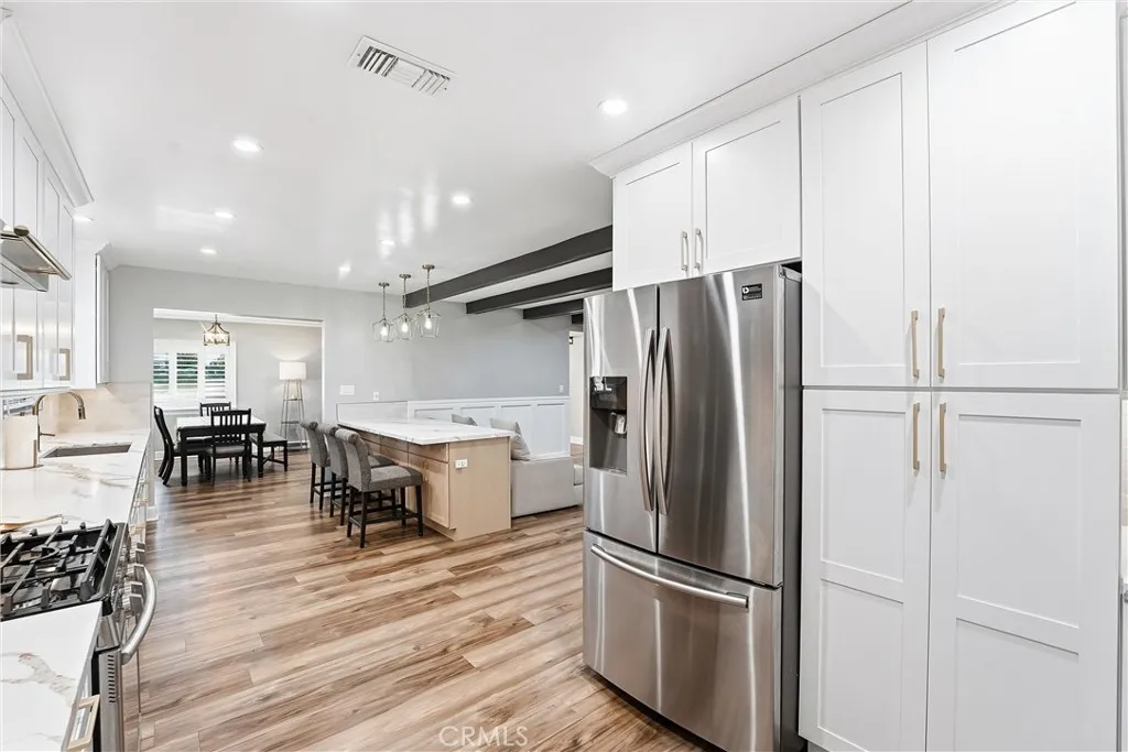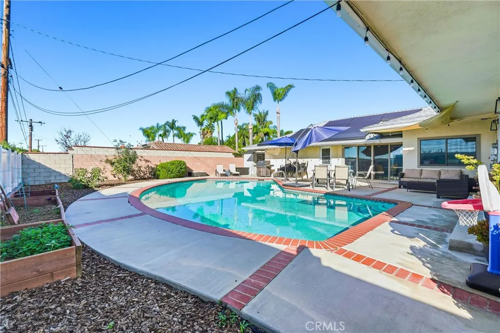 Welcome to 1231 Sunbird Dr., a fully remodeled three-bedroom, two-bathroom single-level Ranch-style home. Thoughtfully renovated with attention to every detail from floor to ceiling, this home features high-end materials, fixtures, and appliances throughout. The elegant gourmet kitchen is equipped with new appliances, a pot filler, amaretto quartz countertops, and a tumbled marble backsplash. Designed for both daily living and entertaining, the kitchen includes a formal dining area and counter seating, all perfectly integrated into an open floor plan. Natural light fills the home, creating a bright and airy atmosphere. A seamless flow connects the living space to the backyard, which features a pool and a covered patio. The interior also includes upgraded bathrooms and a versatile additional space perfect for an office or playroom. For added convenience, the home provides an indoor laundry room, direct garage access, an EV hookup, and a solar system. Situated on a gracious, sprawling corner lot, the exterior is ideal for summer gatherings. This property is located on a quiet street in one of the most desirable neighborhoods in La Habra, offering privacy within a top-rated school district and close proximity to dining, shopping, and freeway access. Homes rarely become available in this area. Dont miss the opportunity to make this exceptional property your own!