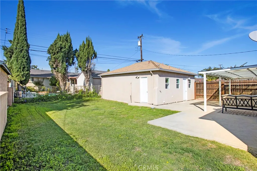 BEAUTIFULLY UPDATED 3-BEDROOM HOME ON A CORNER LOT WITH SPACIOUS YARD, NEW AC, AND DETACHED GARAGE PRIMED FOR ADU CONVERSION! Welcome to this charming and meticulously maintained single-story 3-bedroom, 1-bath home offering comfort, style, and modern functionality throughout. Situated on a desirable corner lot, this residence boasts new flooring, new paint inside and out, new dual-pane windows that provide abundant natural light and energy efficiency, and are guaranteed for life for lasting peace of mind. Step inside to a tastefully designed living room with recessed lighting and ceiling fan, flowing seamlessly into the dining area. Each room has been upgraded with hardwired internet and USB ports, ensuring your electronics are always powered and connected. All 3 bedrooms feature new carpet, fresh paint, and ample closet space with built-in storage, thoughtfully designed for convenience. The bathroom is beautifully updated with exquisite tile work, wood-grain porcelain flooring, a personalized niche, tub/shower combo, and wired for an exhaust fan for added comfort. The kitchen is a chefs dream, featuring brand-new stainless steel appliances: gas stove, refrigerator, dishwasher, and over-the-range microwave. Designed to accommodate gas or electric stoves, it offers ample cabinet space, extended countertops, and a new garbage disposal. The detached 2-car garage, approx. 550SqFt, is primed to be converted to an ADU; featuring an attached bathroom with sink and toilet, a 60 AMP subpanel, fully upgraded laundry room, workshop with cabinet storage, separate access, and ample park