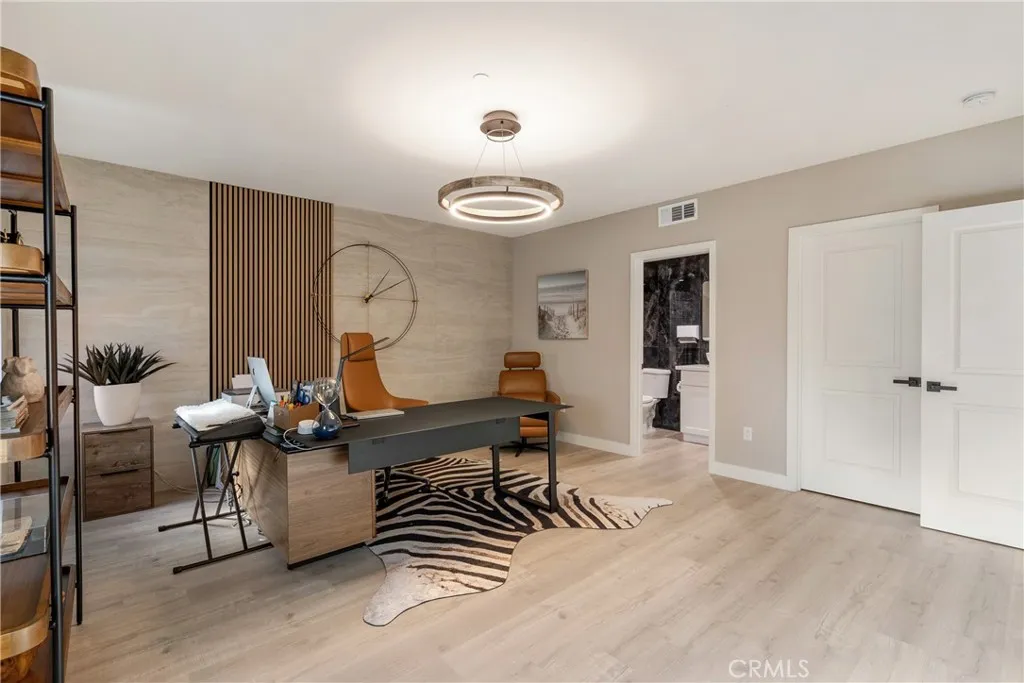 Welcome to 355 S Cypress Street. Located in the beautiful city of La Habra! It's the Largest floor plan in the community. High ceilings throughout the home makes the entire condo feel extra spacious. Numerous windows throughout which allows for natural light. Wonderful kitchen opens to an enormous dining room. Kitchen has soft closing drawers and cabinets. Large kitchen with quartz countertop and a large waterfall island. Brand new appliances (dishwasher, stove, microwave). Vinyl Flooring throughout. Large First Floor Suite with Den. Enormous Great Room. Two Bedrooms and Loft upstairs. Primary Bedroom has two closets. Primary Bathroom has dual sinks and walk in shower. Balcony/Deck on Third Floor has panoramic view of the neighborhood and hills. Large Laundry Room. 2 Car Direct Access Garage. Solar panels help lower electricity bill. Community has numerous guest parking and BBQ/Picnic area. Conveniently located near restaurants, shopping centers, markets, schools, parks, and more. Easy access to the 57, 5, and 91 Freeways.