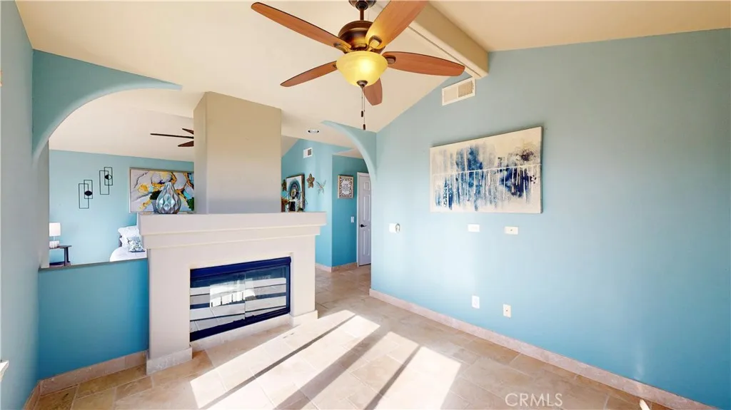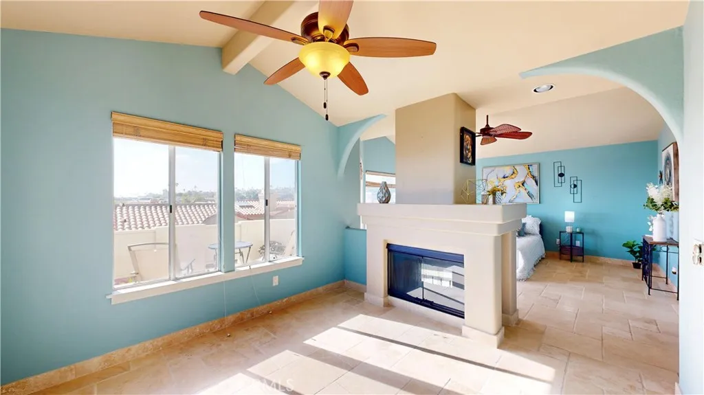 Welcome to Ventana! Experience refined coastal living in this beautifully appointed La Jolla townhome, where ocean views, timeless finishes, and thoughtfully designed spaces come together in perfect harmony. Bathed in natural light, the main living area features soaring ceilings, skylights, and expansive windows that create an open, airy ambiance. A stunning double-sided fireplace anchors both the living and family rooms, adding warmth and architectural charm. The home also offers a formal dining room, perfect for entertaining, and a well-designed layout that blends comfort with functionality. The kitchen is in excellent condition, showcasing custom cabinetry, granite countertops, and stainless steel appliances, including a dishwasher and microwave, ideal for both everyday living and hosting. Upstairs, all three bedrooms provide privacy and comfort. The luxurious primary suite is a true retreat, complete with its own double-sided fireplace and a versatile en suite loft, perfect for a home office or private lounge. Step out through elegant double doors onto your private balcony and enjoy ocean views along with glimpses of the vibrant surrounding area. The spa-inspired primary bathroom features exquisite wood and tumbled travertine finishes, dual vanities, a deep soaking tub, a separate walk-in shower, and a private water closet. A spacious walk-in closet with custom organizers completes the suite. Two additional generously sized bedrooms offer flexibility and comfort, enhanced by ceiling fans and easy-care tumbled travertine flooring. The upstairs hall bath includes a dual v