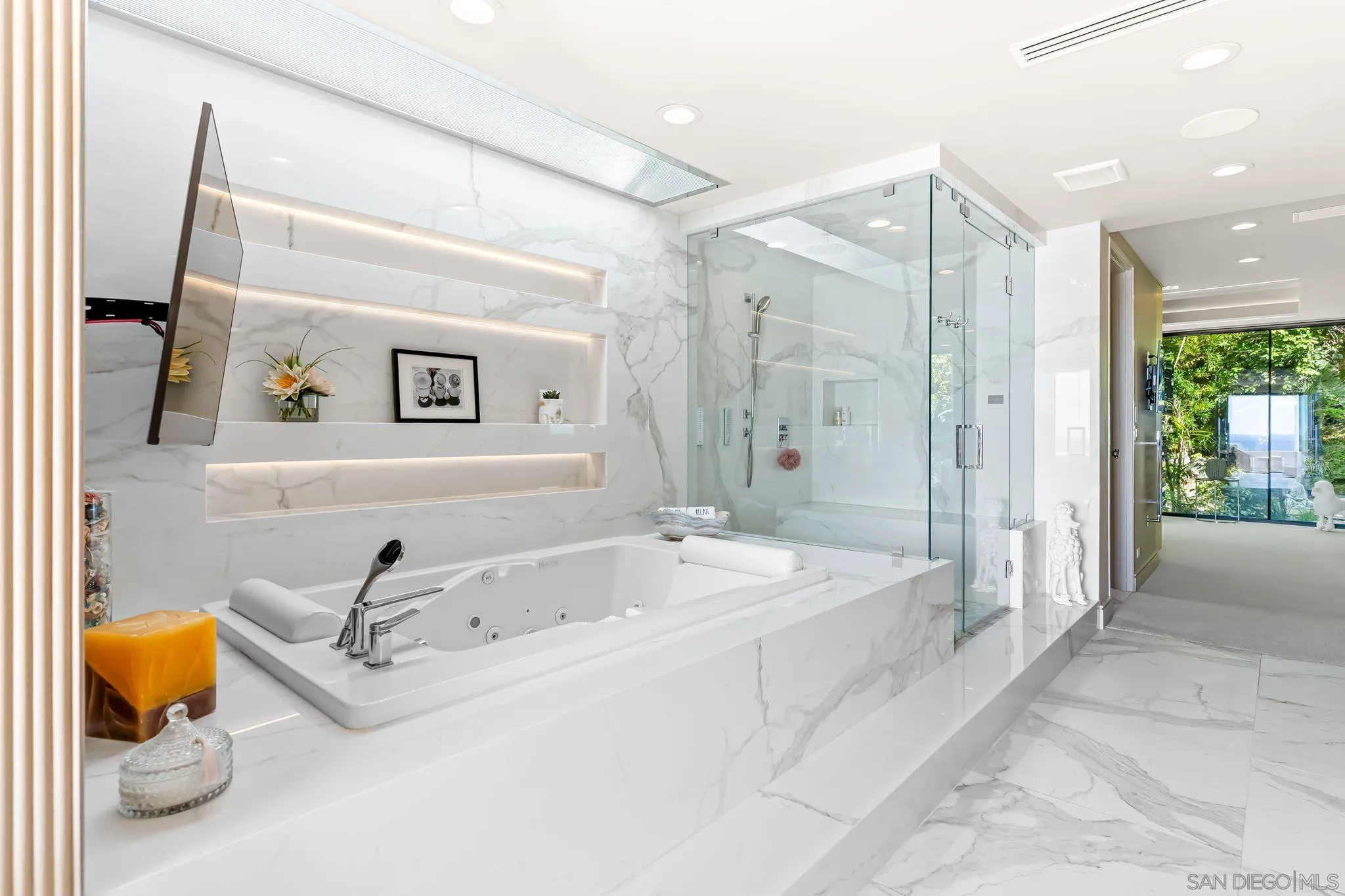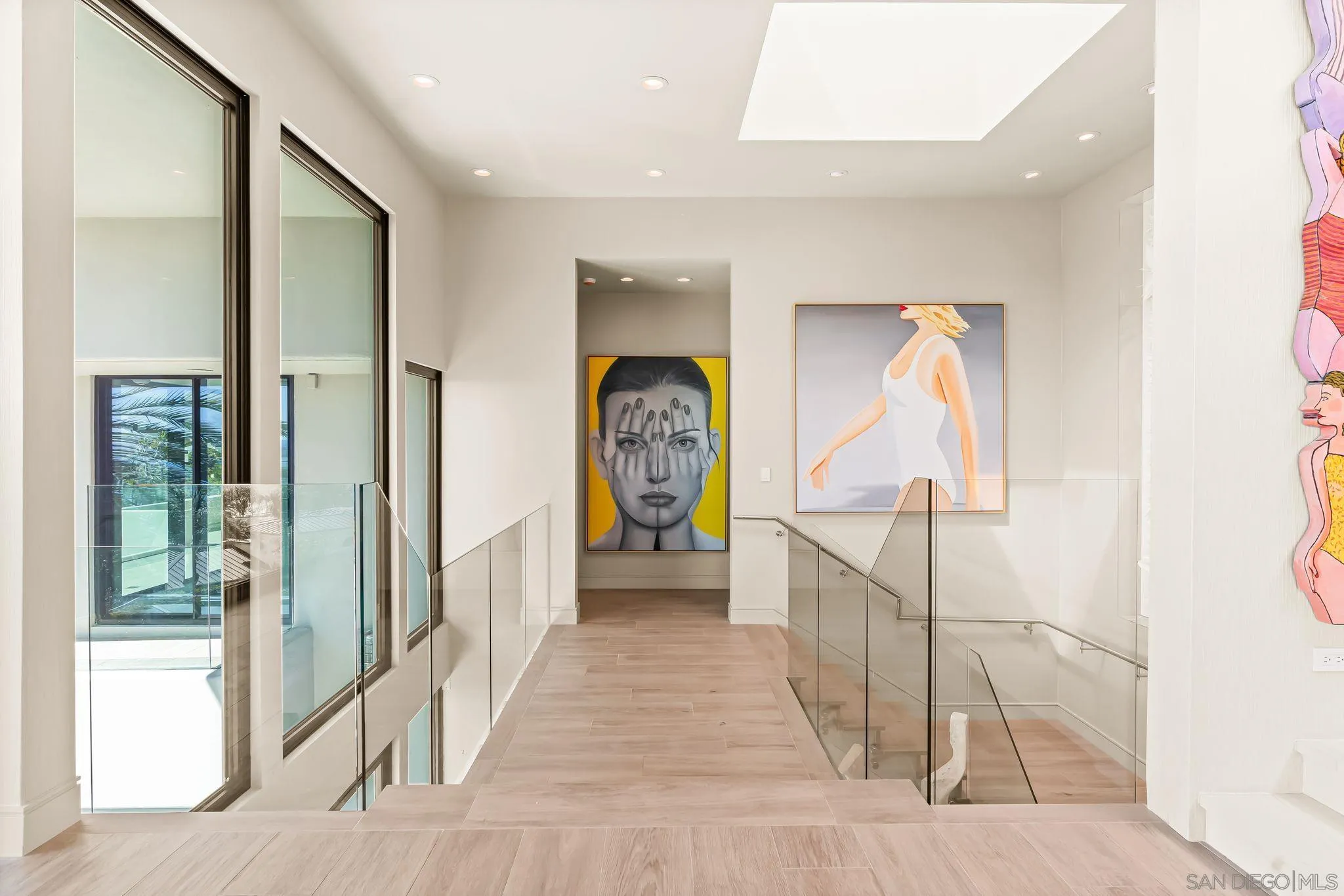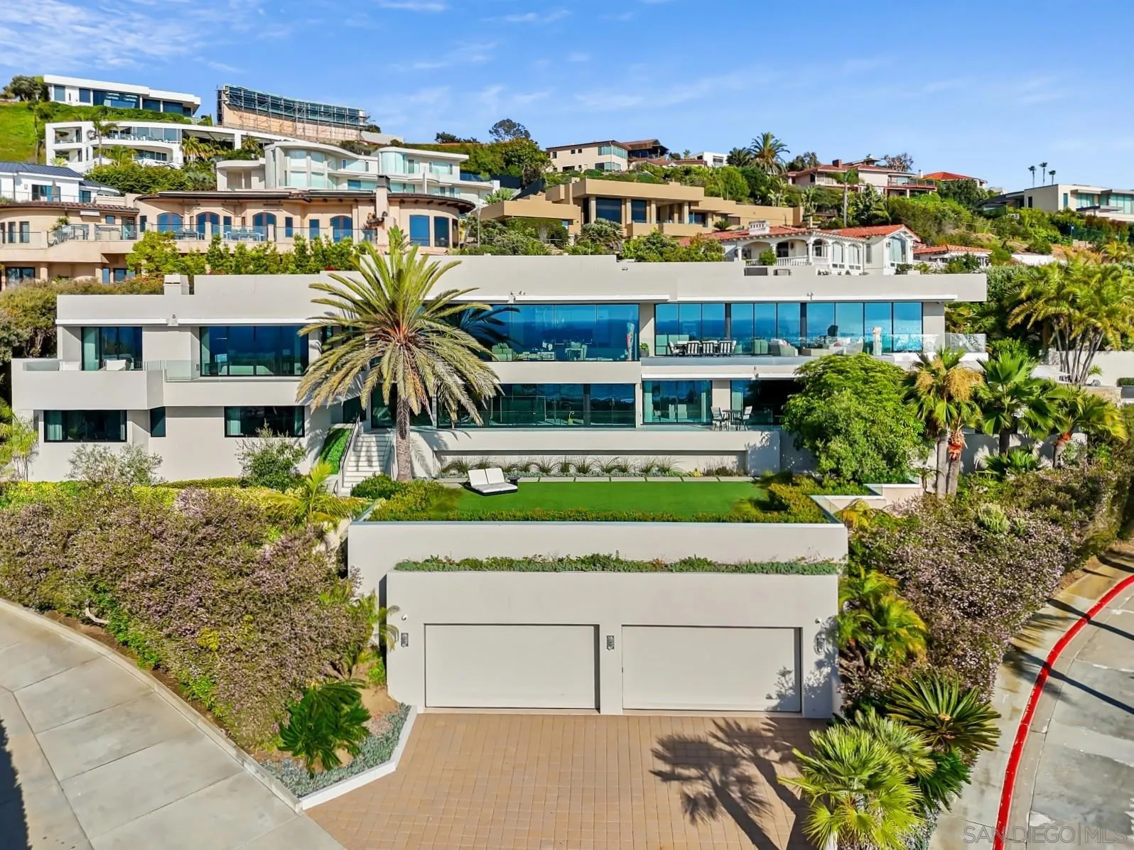 Set above iconic La Jolla Shores Beach, providing panoramic views of the ocean, Scripps Pier, and La Jolla Cove, this extraordinary estate offers a rare blend of privacy, scale, and effortless sophistication. Tucked on a 0.49-acre parcel within the gated Montoro enclave, the 8,927 sq ft residence has been completely reimagined for refined luxury and seamless indoor-outdoor flow. The home features 4 bedrooms, 4 full and 4 half baths, an office, gym, media room, wine cellar, and garage parking for 6 vehicles. Vast walls of glass and floor-to-ceiling sliding doors immerse the interiors in breathtaking coastal scenery and abundant natural light. Expansive living areas and a chef’s kitchen open to a spectacular view terrace—ideal for dining al fresco or soaking in the sunset. The redefined primary wing is a true retreat, with a fireplace, dual sitting rooms, wraparound view deck, two boutique-style walk-in closets, and dual spa-inspired baths with steam showers—one with a spa tub. The lower-level hosts 3 secondary bedrooms, an office, gym with sauna, media lounge with wet bar, and wine cellar. Outdoors, a setting of beauty and seclusion unfolds from a sprawling patio with pool and spa, outdoor kitchen, ocean-facing decks on each level, and a flat turfed yard bordered by lush landscaping. Car enthusiasts will appreciate a 2-car attached garage plus an oversized 4-car detached garage. A Crestron system integrates lighting, climate, audio/visual & security cameras. Montoro amenities include a pool, spa, and 2 tennis courts—just minutes from the beach, UCSD, dining, and The Village.