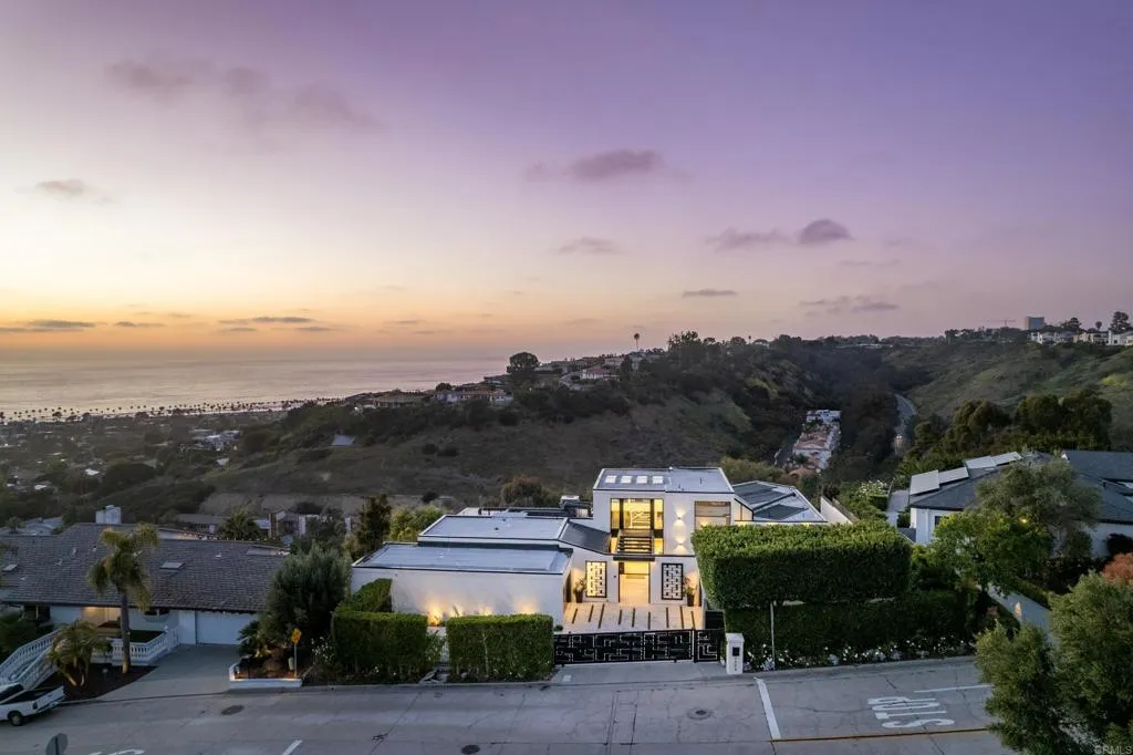 Perched above La Jolla Shores with sweeping coastal views, this 5BR/6BA sanctuary embodies relaxed California sophistication and seamless indoor-outdoor living. Nearly all spaces are on the main levelincluding the ocean-view primary suitewhile a private upper-level guest wing gives visitors their own coastal retreat. Every bedroom has an en-suite bath, and multiple view decks offer endless moments to savor ocean breezes and fiery sunsets. Behind the gated entry, a serene courtyard with a pool and waterfall sets the tone for laid-back luxury. Inside, walls of glass and multiple La Cantina door systems open the main living areas completely to an expansive view patioperfect for sunset dinners, weekend gatherings, or quiet mornings with coffee overlooking the shoreline. The chefs kitchen with top-tier finishes flows into the dining and living spaces, where a striking glass-encased wine cellar becomes both a focal point and a conversation piece. On the lower level, a private wellness and leisure space awaits, complete with a gym space, sauna, jacuzzi, and a game room with pool table and TVideal for post-workout soaks, watching the big game, or unwinding with friends. A terraced hillside orchard of grapes, apples, citrus, and avocado trees brings a taste of California to your backyard. Renovated top to bottom in 2021, this turnkey home invites you to settle in and start living the La Jolla lifestylejust minutes from beaches, dining, top schools, and freeway access.
