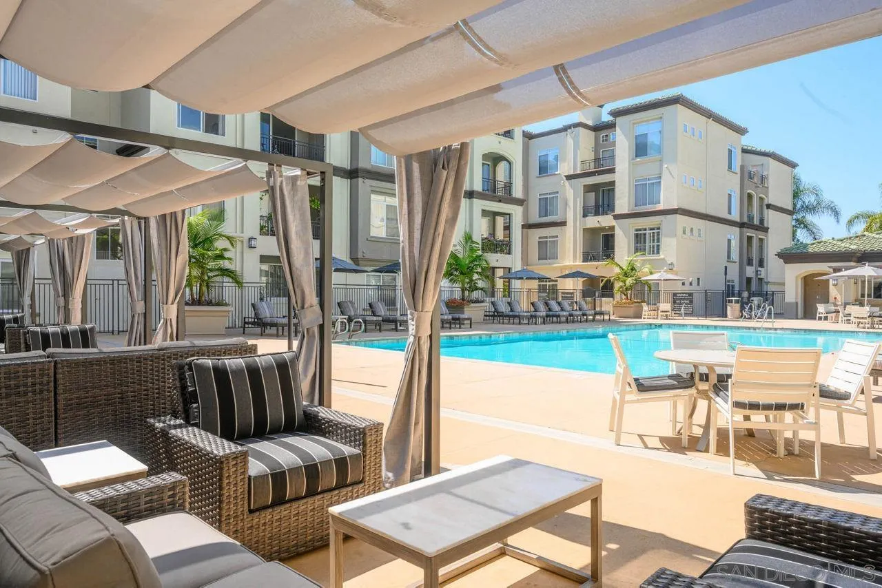 This isn't just a condo – it's your gateway to the La Jolla lifestyle you've been dreaming of. With move-in ready condition, unparalleled amenities, and that coveted and huge private patio, this home offers luxury living without the luxury home maintenance. Discover your own private retreat in this stunning single-level ground-floor condo with no stairs or elevators needed to reach your front door. Step outside to your expansive private patio – a rare find that faces the exterior of the property and perfect for hosting dinner parties with your large outdoor dining table or unwinding in your lounging area, all while enjoying the serene La Jolla atmosphere away from common area foot traffic. Fresh new carpets & crisp, newly painted interiors. Why vacation elsewhere when you live in paradise? The Regents La Jolla has two heated swimming pools with private cabanas, outdoor community BBQ areas with professional-grade grills, state-of-the-art fitness center with yoga room, complimentary fitness and wellness classes. A clubhouse featuring billiards, game room, ping-pong, and pool table. Private movie screening room/theater. Business center with high-speed internet, coffee station, and copy/printing services. Pets are welcome (with restrictions). Unbeatable location: Amazing dining & shopping within walking & biking distance. Bottom line - it's not just a condo - it's your gateway to the La Jolla lifestyle you've been dreaming of.