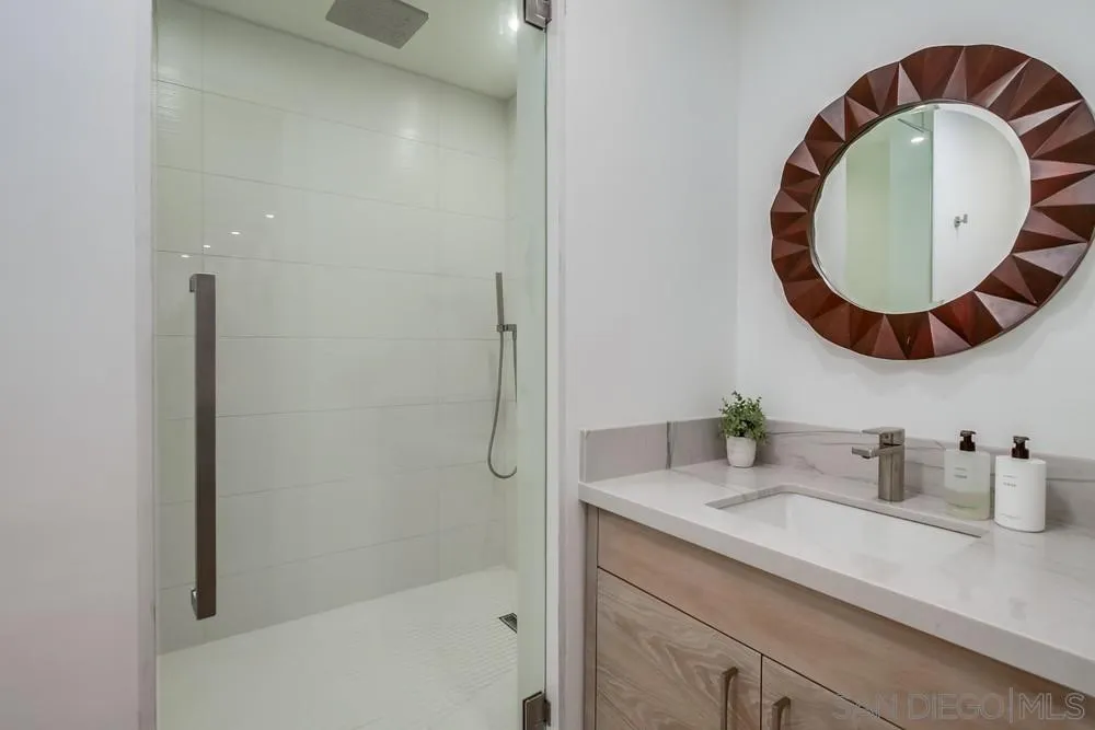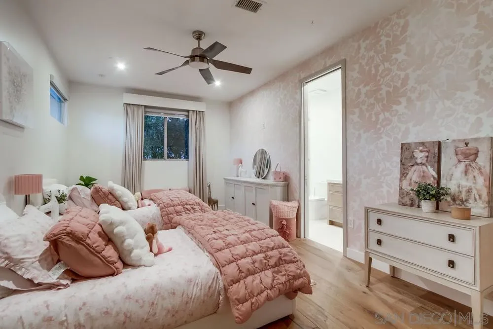 Modern coastal Home, recently remodeled, in LA JOLLA. This stunning 6 bedroom, 6.5 Bathroom home offers an ideal layout with 2 bedrooms on the main level and 4 upstairs. The primary suite features partial ocean views and a fireplace. The spacious floor plan includes a brand new constructed playroom/pool room with its own full bathroom, perfect for entertaining or guest use. Professionally designed, this exquisite home features rare upgrades like; Stone finished walls in foyer and bathroom, Seamless Walnut Texture kitchen cabinets with sandblasted glass doors and white macaubas and dark gray quartzite counter-tops. Stairs are made from steel structure and covered with Oak Wood with stainless steel handrail and tempered glass. Window coverings are dual neolux with motorized roman shades in Master Bedroom. Enjoy the convenience of key-less entry system with Ring doorbell. Take in the sun at the pool, completely renovated. You will truly enjoy touring the decor and openness of this magnificent home, designed for comfort and entertaining, this home blends modern upgrades with coastal charm.